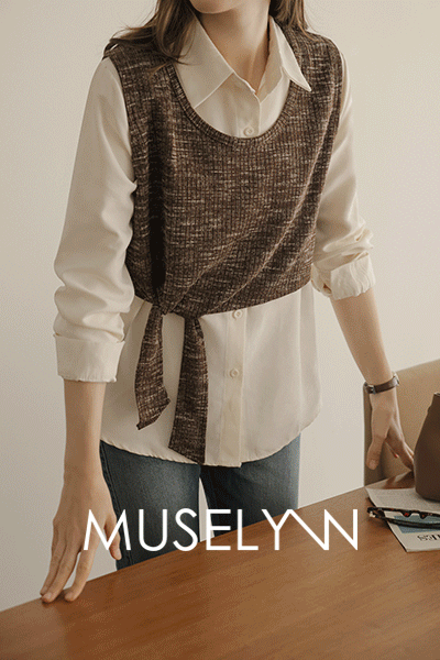 [뮤즈린] 포비 꼬임 셔츠+니트조끼 SET