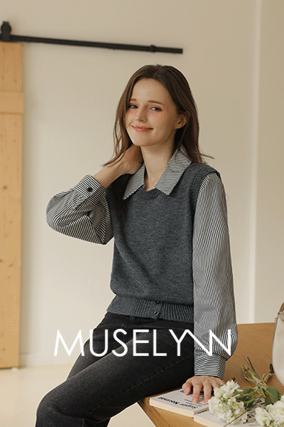 [뮤즈린] 리드 니트배색 스트라이프 셔츠