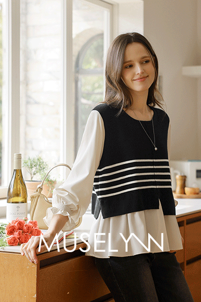 [뮤즈린] 주닌 스트라이프 니트 블라우스