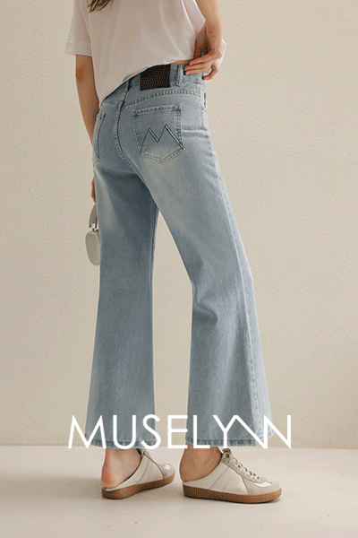 [뮤즈린] 니온 절개 9부 와이드 데님팬츠 [밴딩]