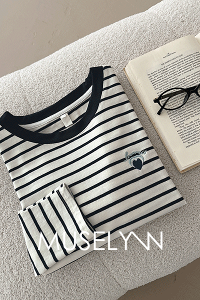 [뮤즈린] 위티 하트자수 스트라이프 티셔츠