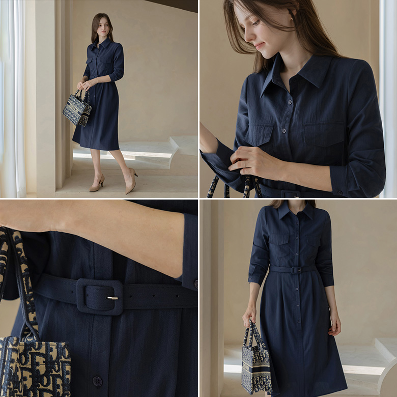 [뮤즈린] [벨트set] 푸콘 카라 원피스