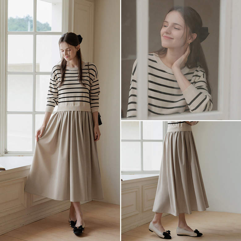 [뮤즈린] 루니아 스트라이프 롱 니트 원피스