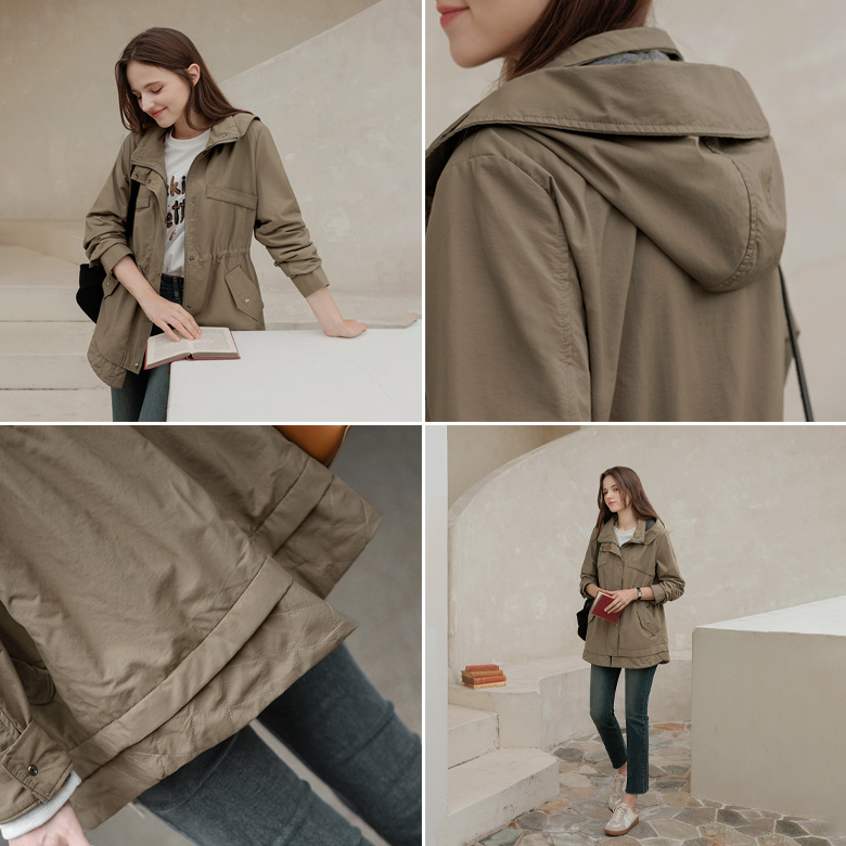 [뮤즈린] 온프 후드 스트링 야상점퍼