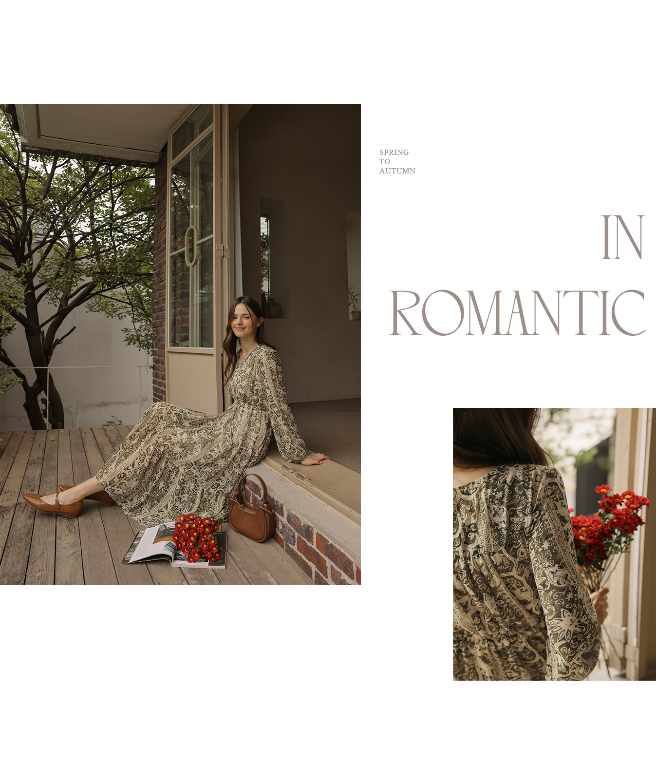 [뮤즈린] 페이즌 스트링 나염 롱 원피스
