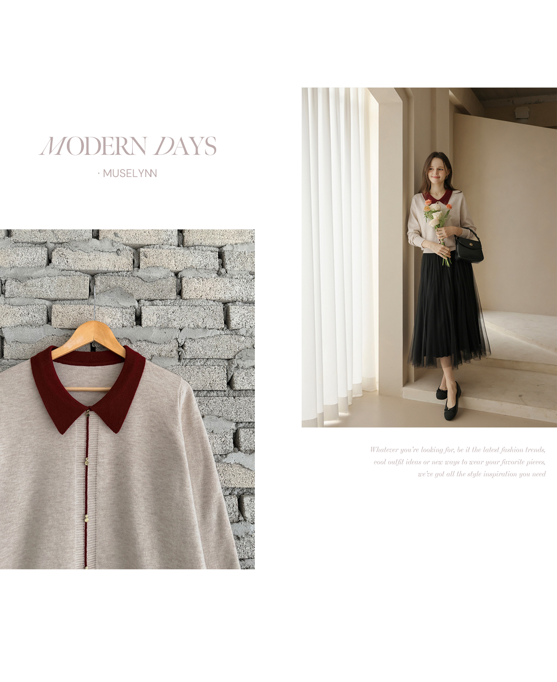 [뮤즈린] 셀리온 골드버튼 카라 배색 니트