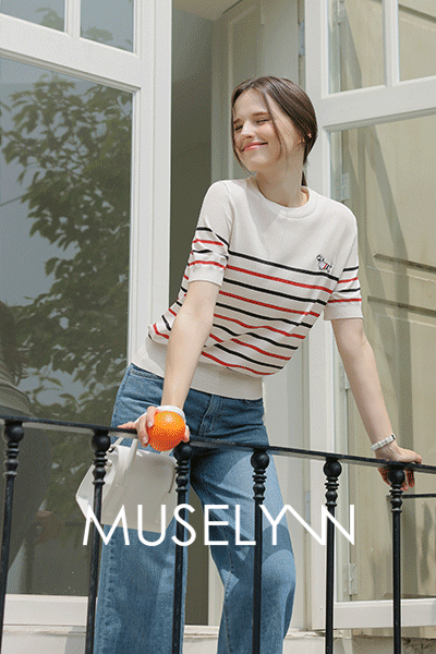 • [뮤즈린] 이빈 퍼피 스트라이프 배색 니트