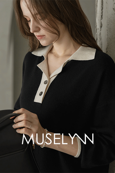 • [뮤즈린] 아모스 카라 배색 니트 원피스