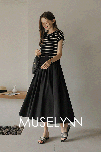 • [뮤즈린] 루니아 스트라이프 롱 니트 원피스