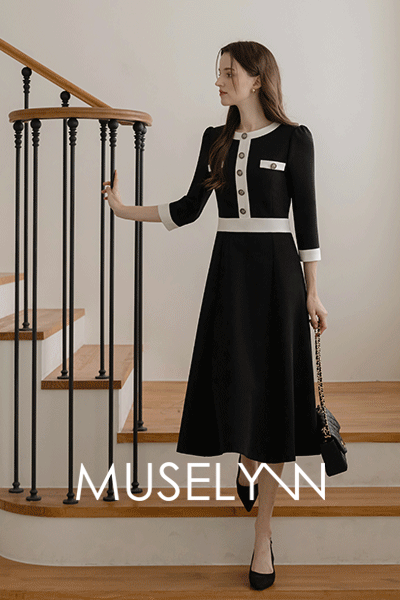 • [뮤즈린] 홀릭 배색 플레어 롱 원피스