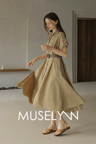 • [뮤즈린] [벨트set] 레이크 셔츠 플레어 롱 원피스
