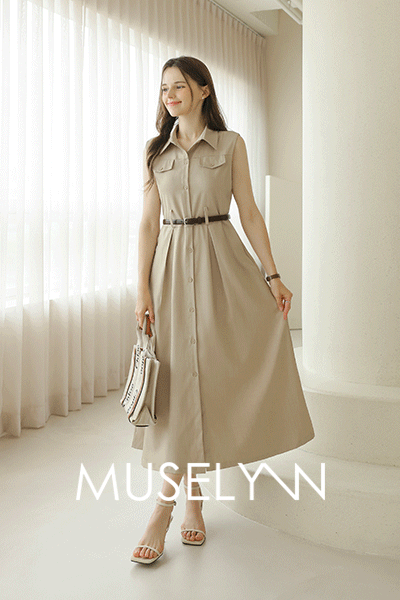 • [뮤즈린] [벨트set] 토닌 카라 나시 롱 원피스