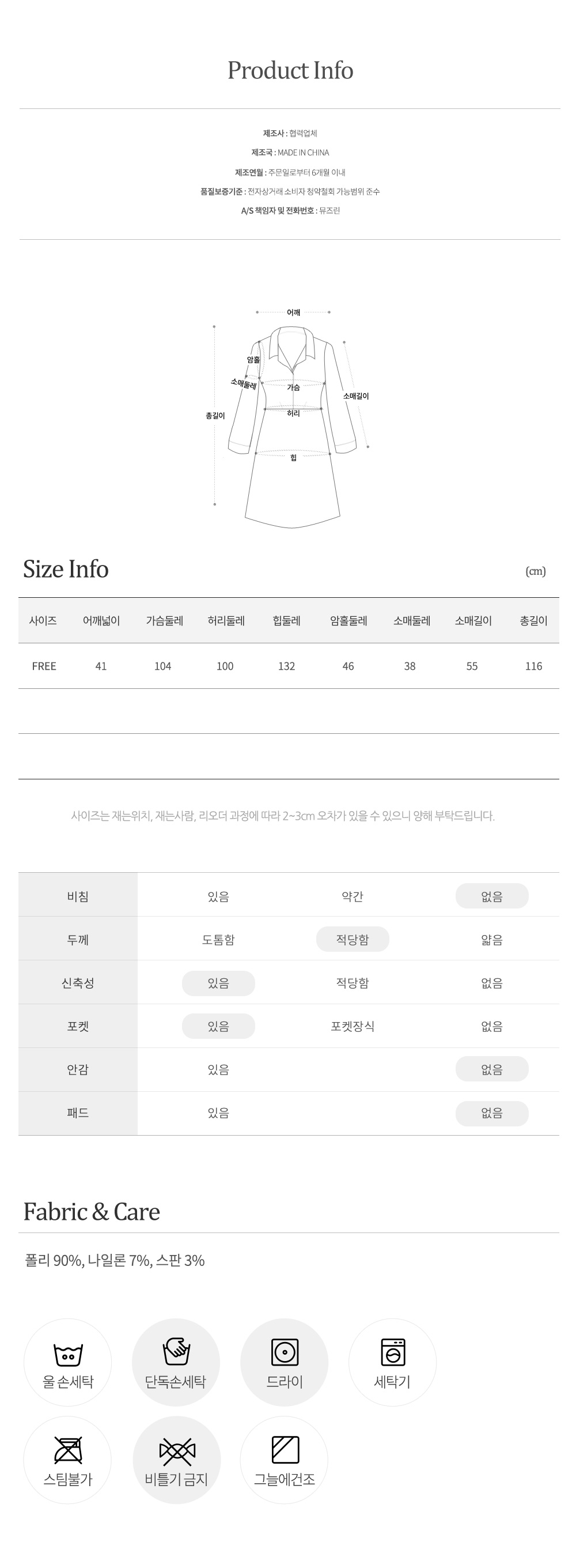 물세탁을 할 경우 건조후 약간의 수축현상이나 이염현상이 발생할 수 있으니 드라크리닝을 권장해 드립니다.