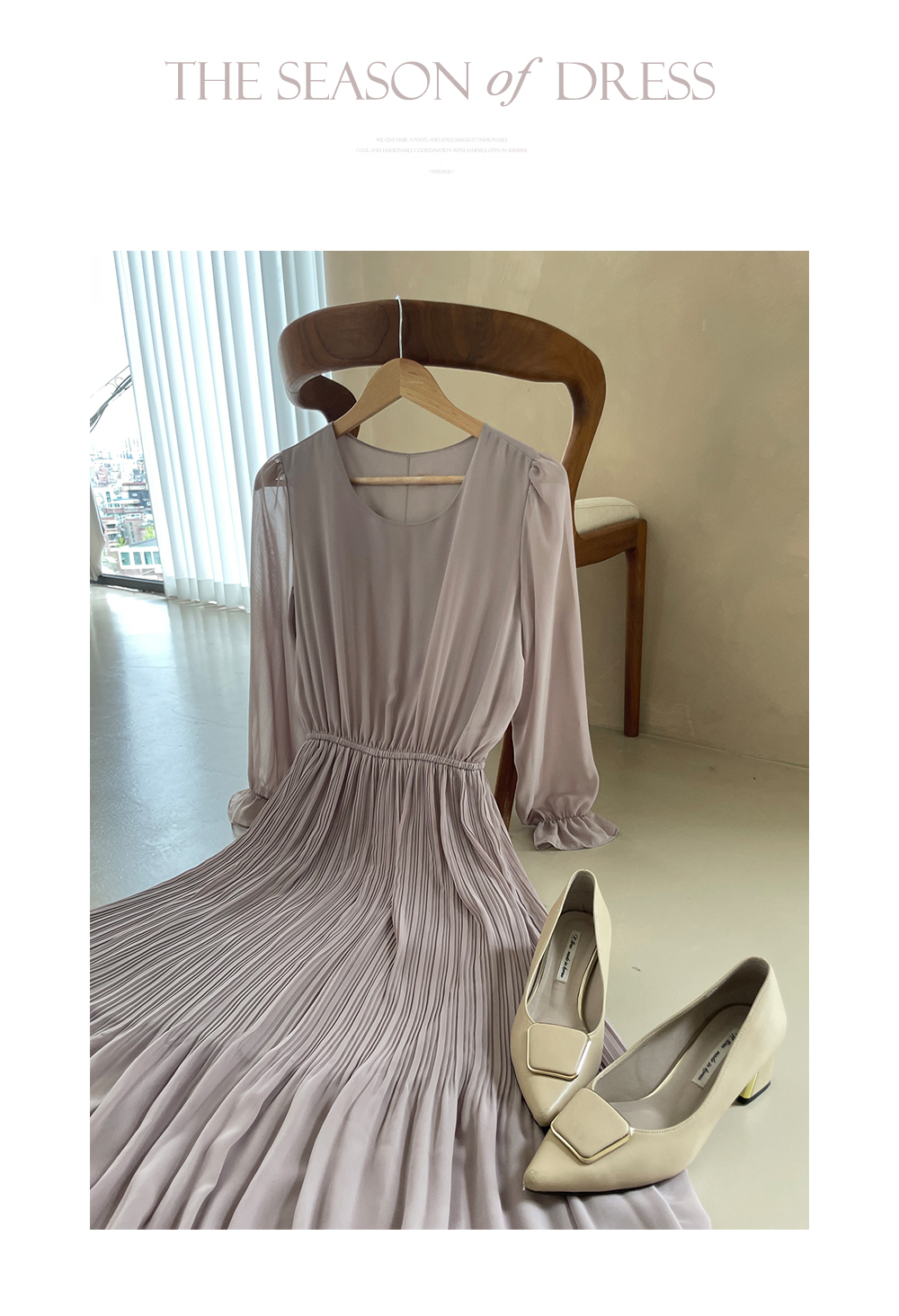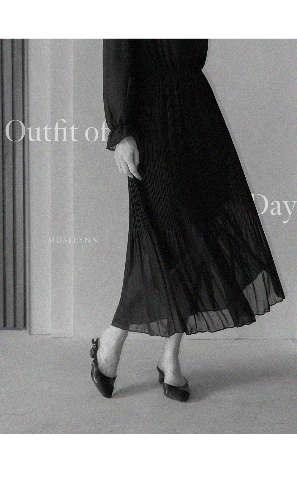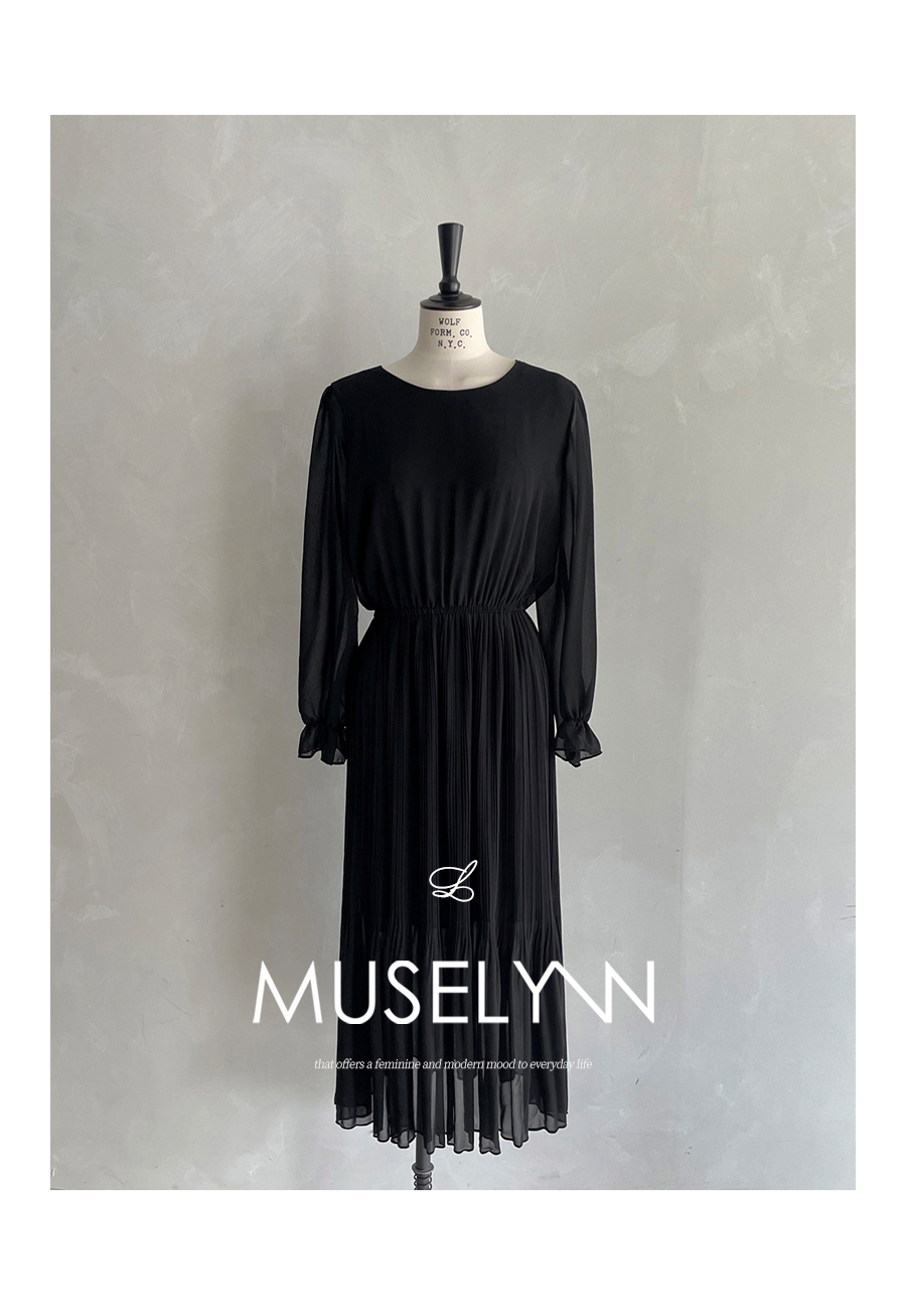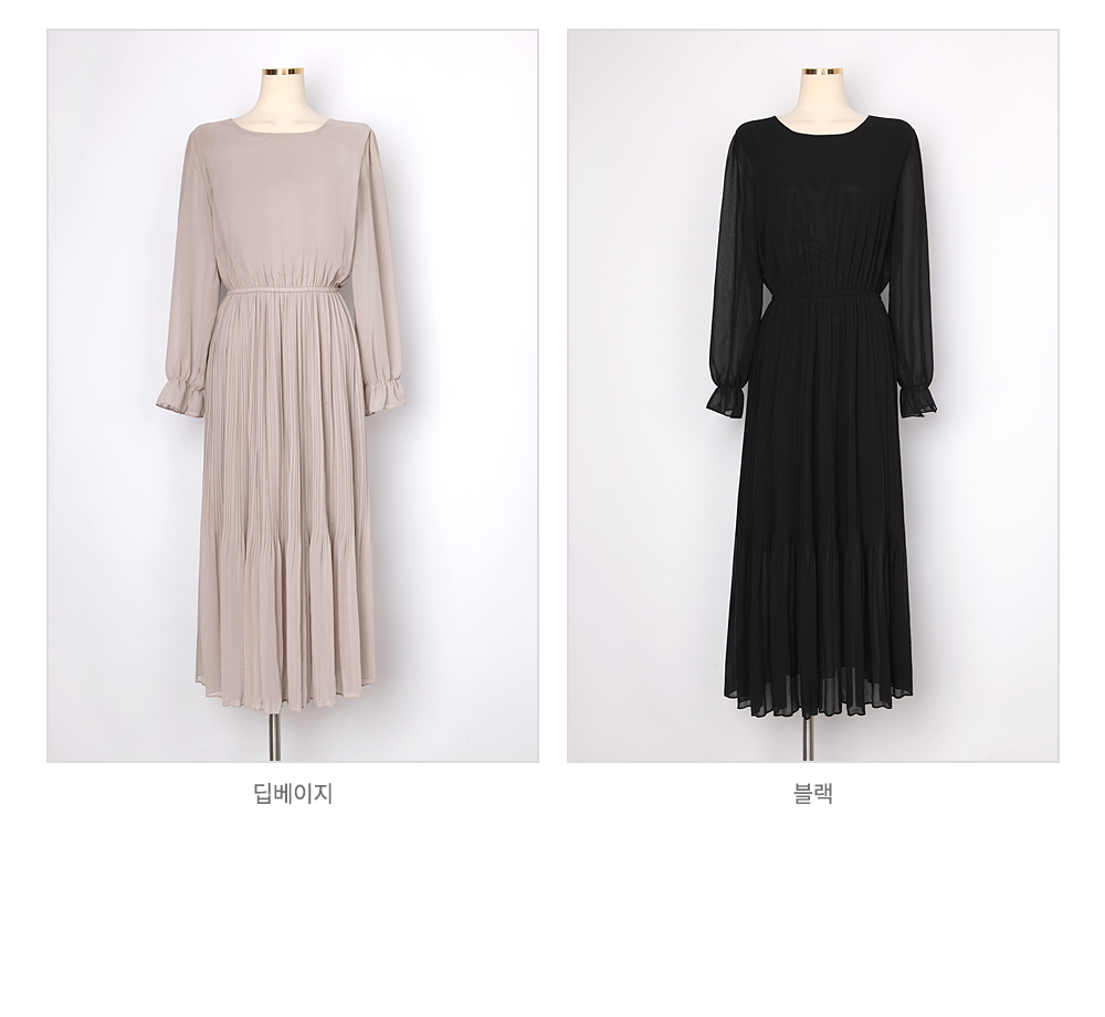 [뮤즈린] 정도 플리츠 쉬폰 롱 원피스