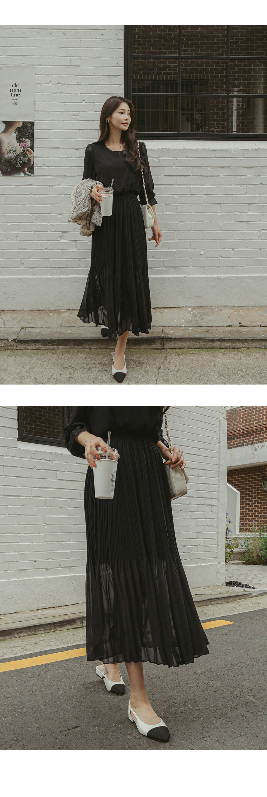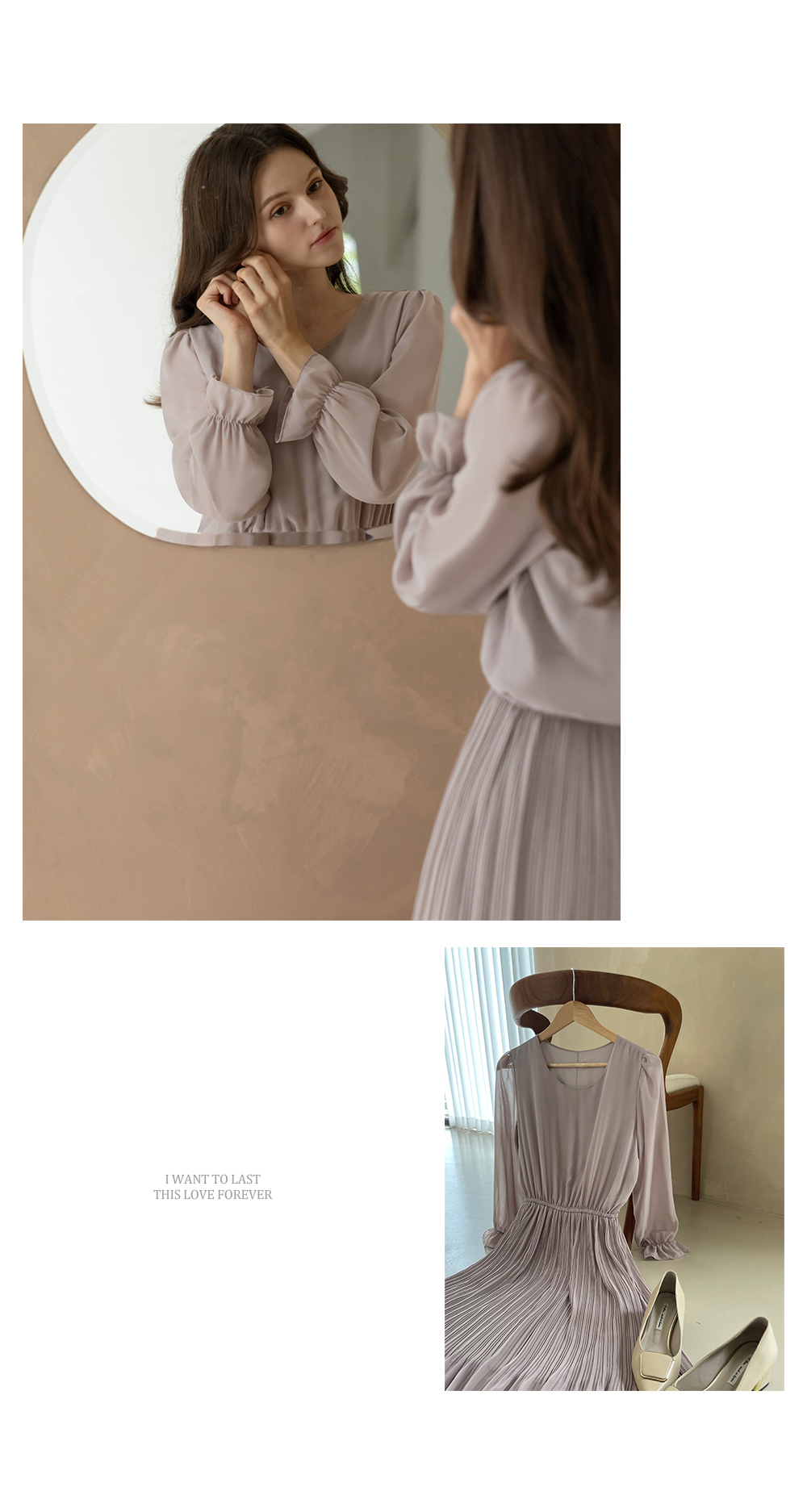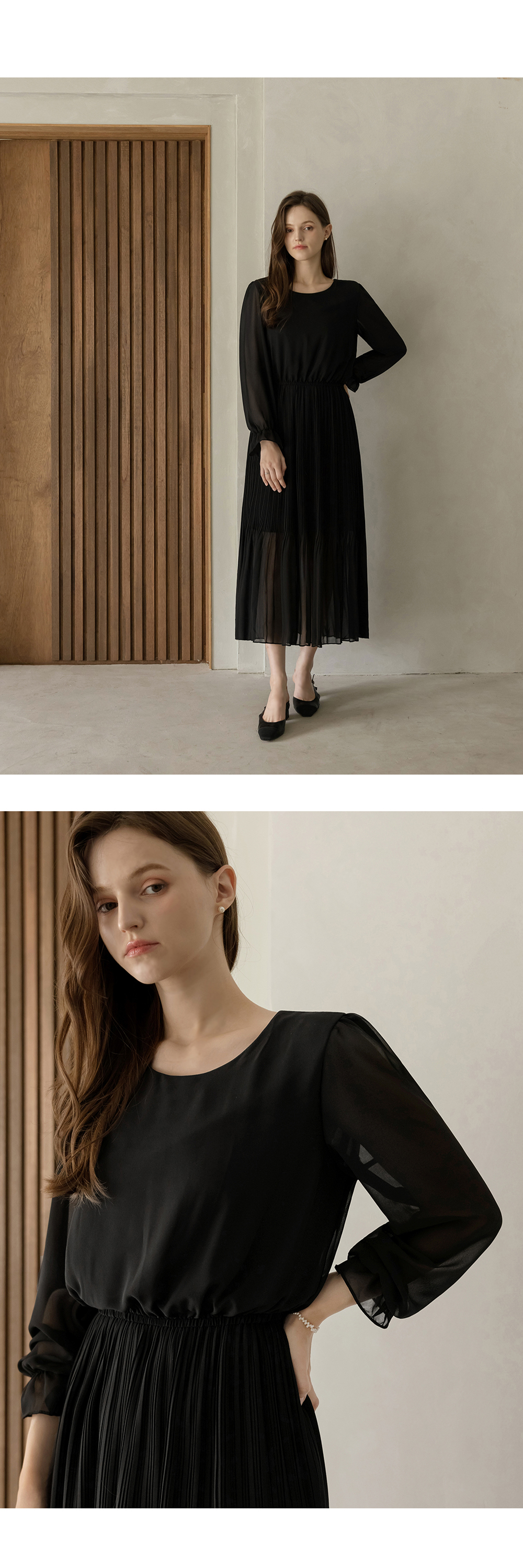 [뮤즈린] 정도 플리츠 쉬폰 롱 원피스