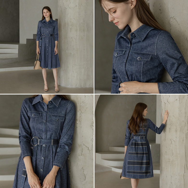 [뮤즈린] [벨트set] 디아나 체크 데님 원피스