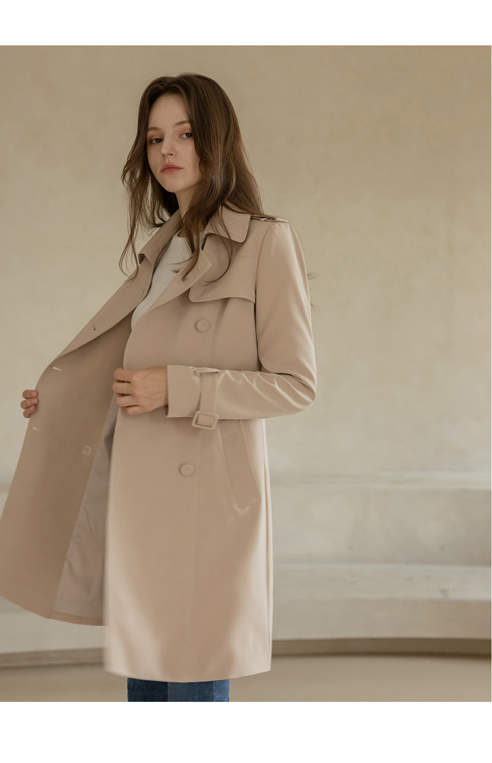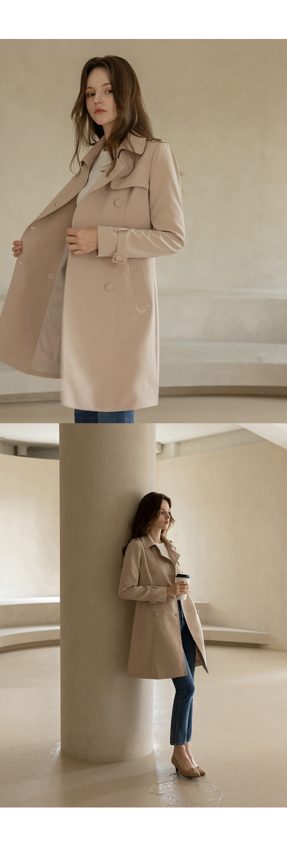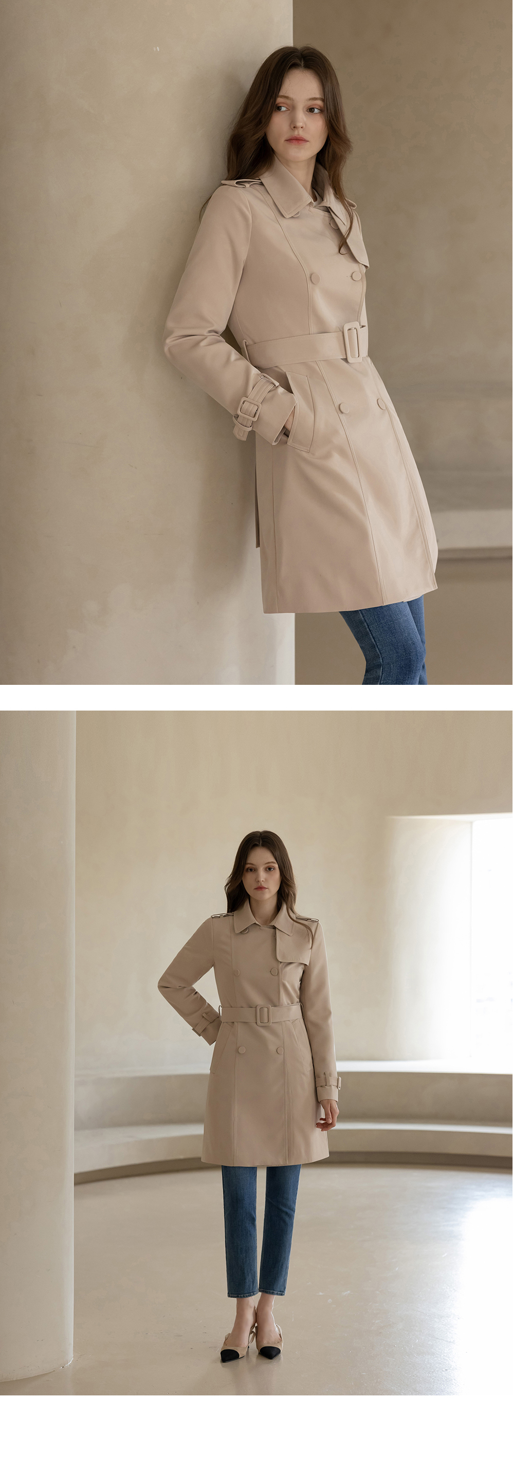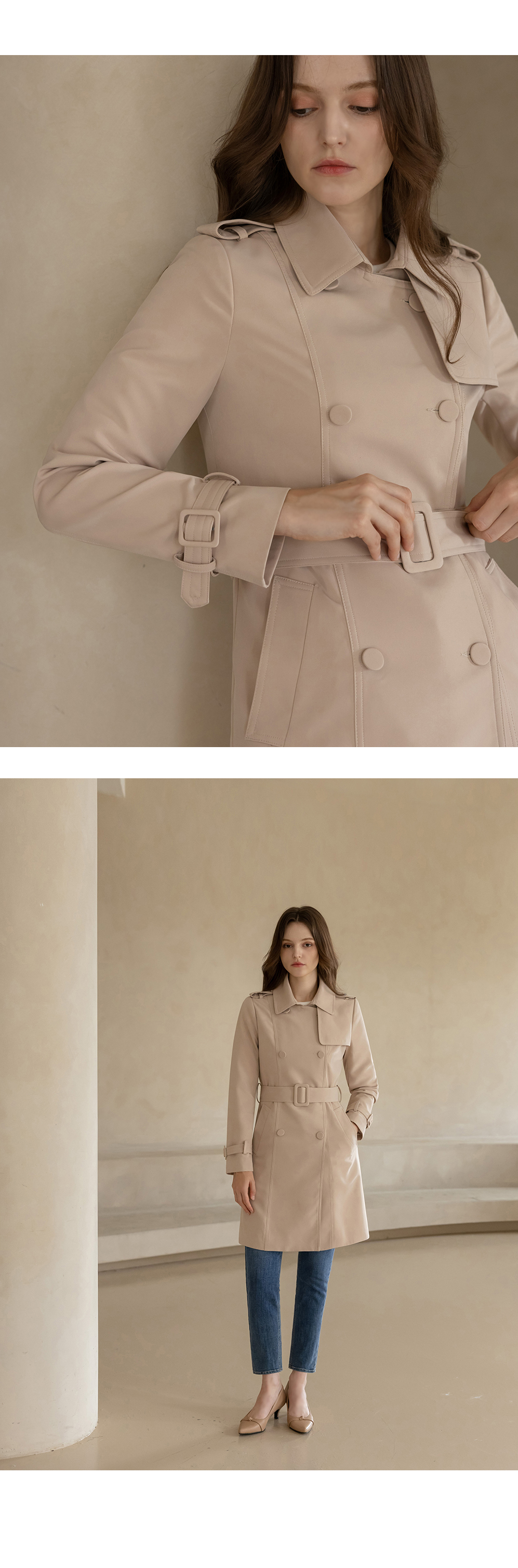 [뮤즈린] [벨트set] 에바 스판 트렌치코트