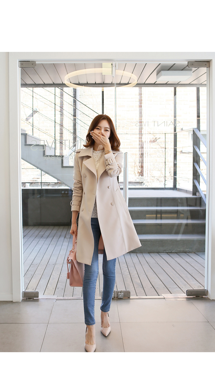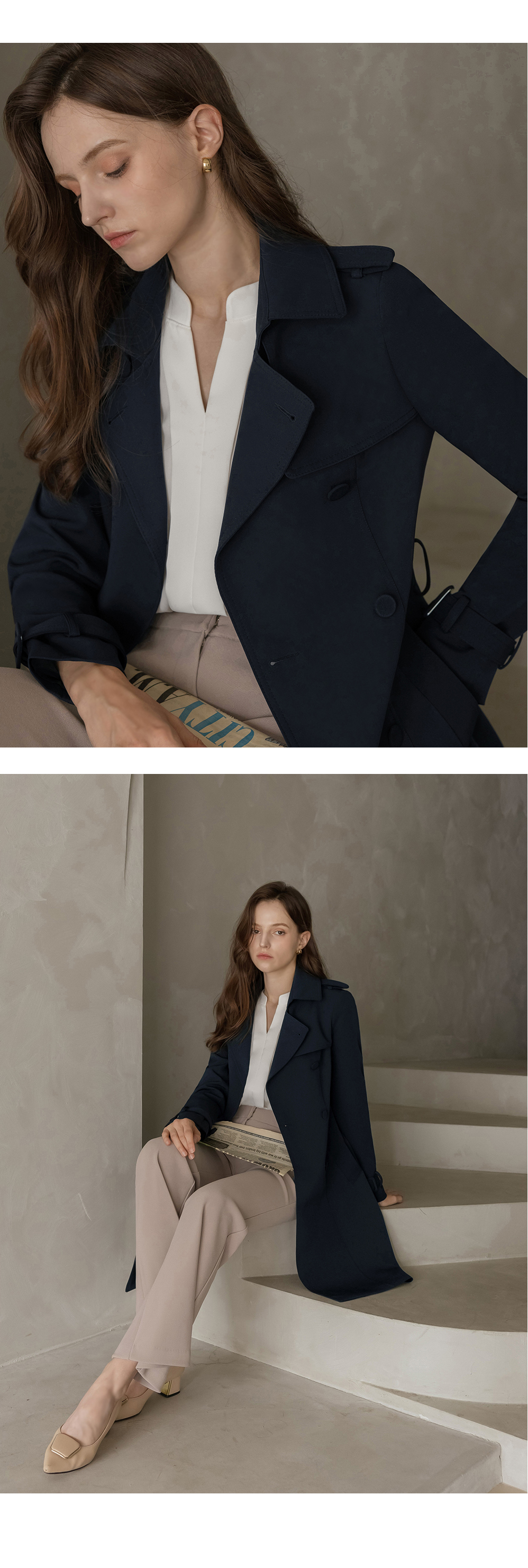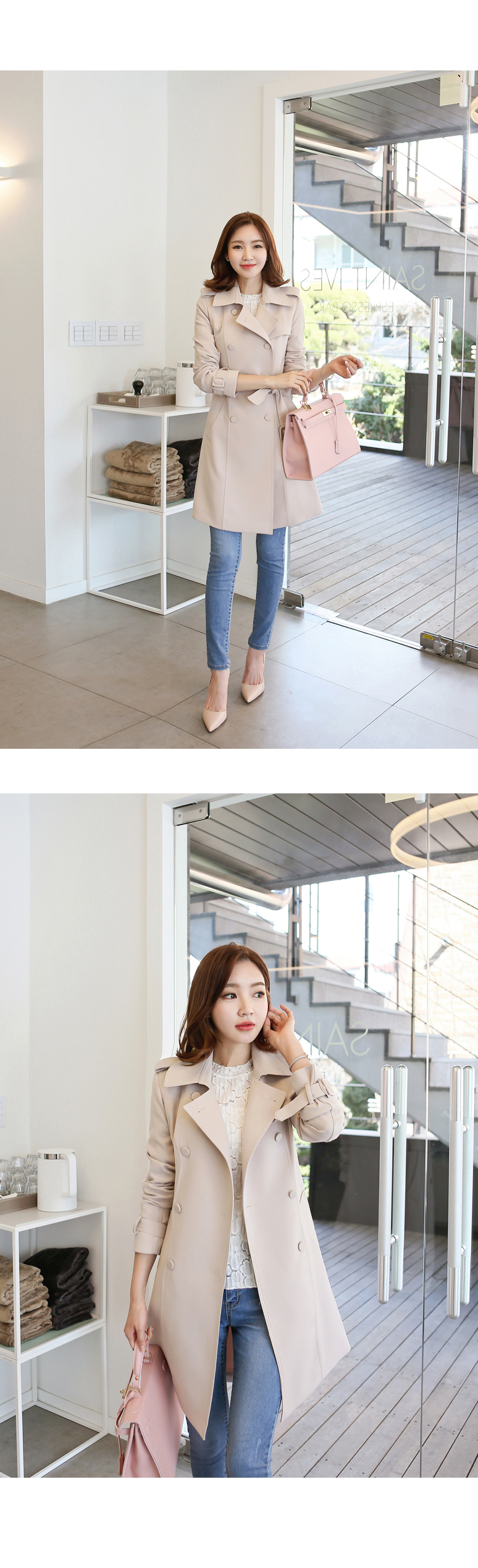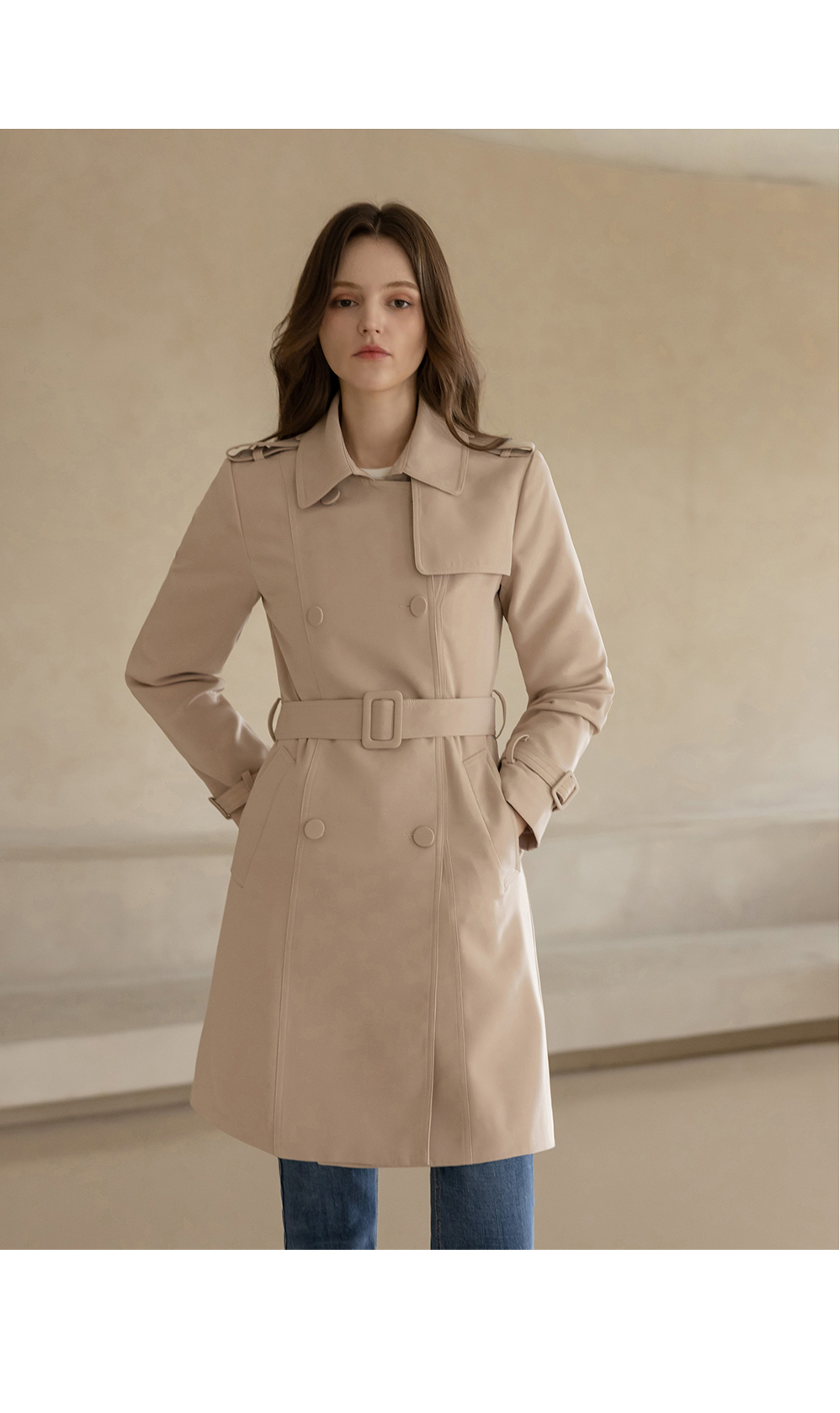 [뮤즈린] [벨트set] 에바 스판 트렌치코트