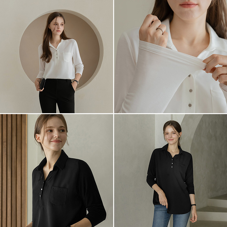 [뮤즈린] 편안 카라 포켓 블라우스 티