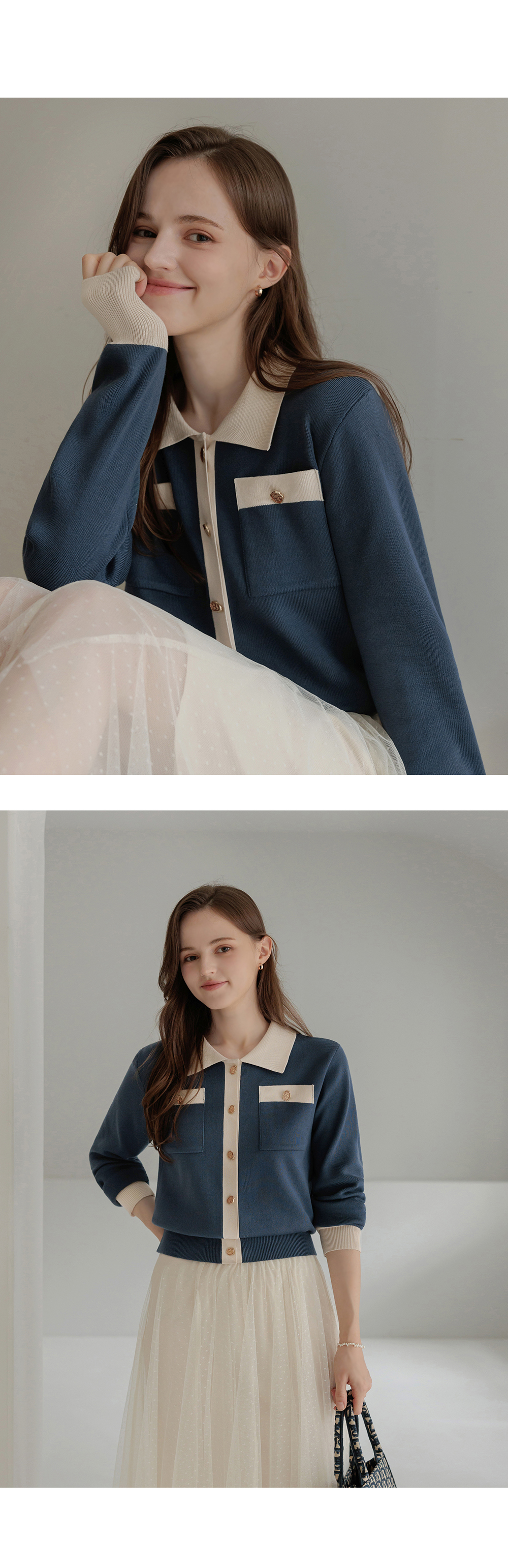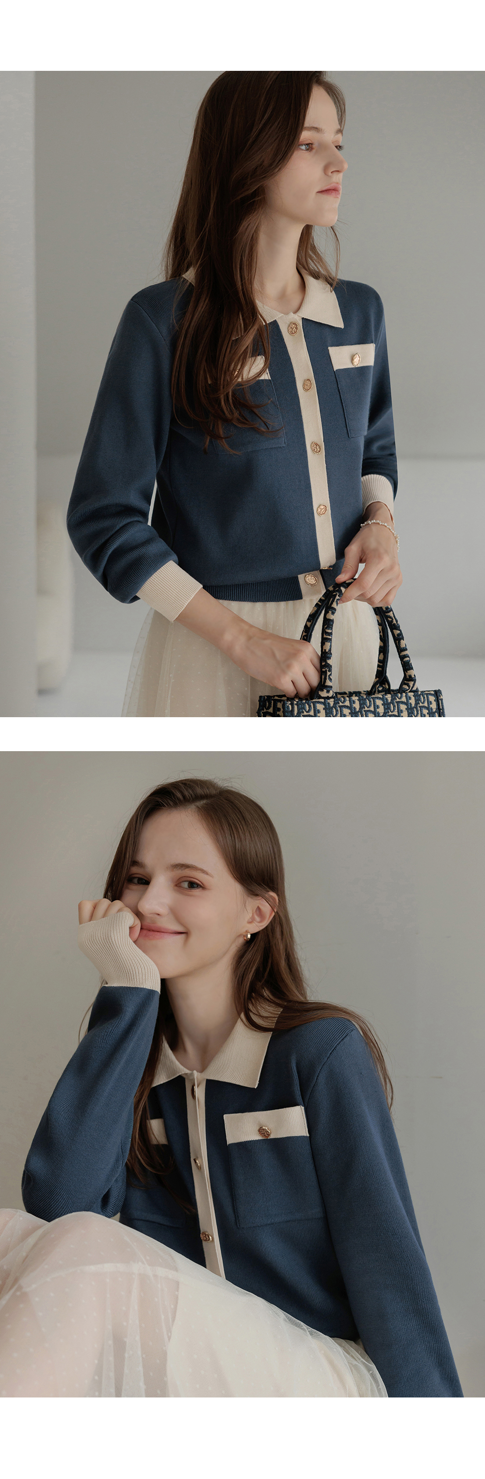 [뮤즈린] 수안 배색 니트 가디건