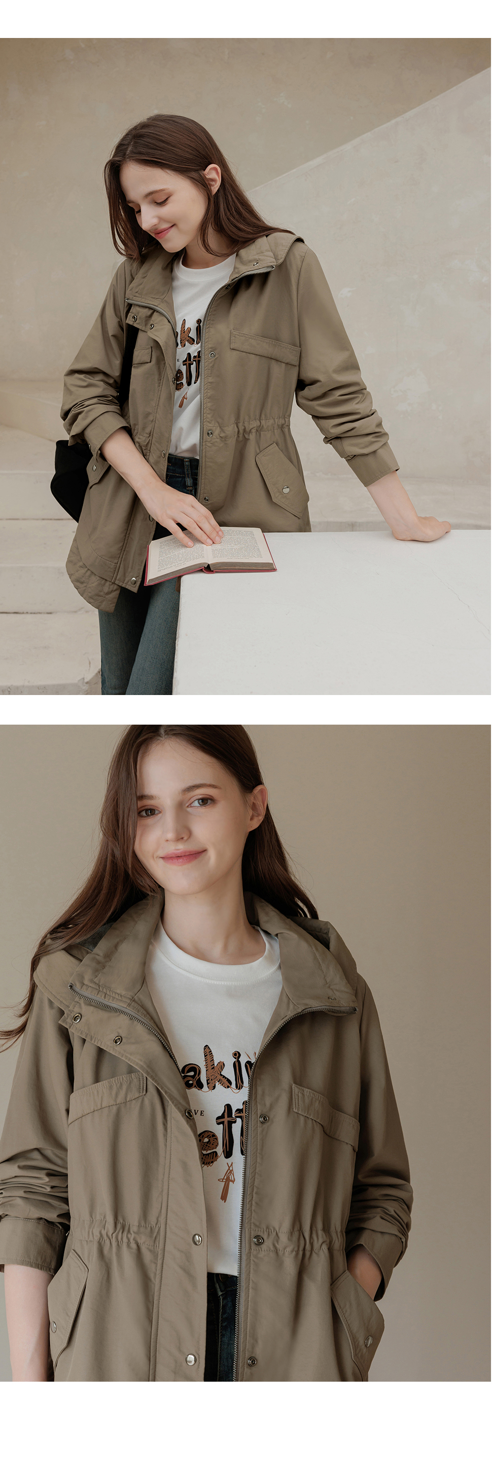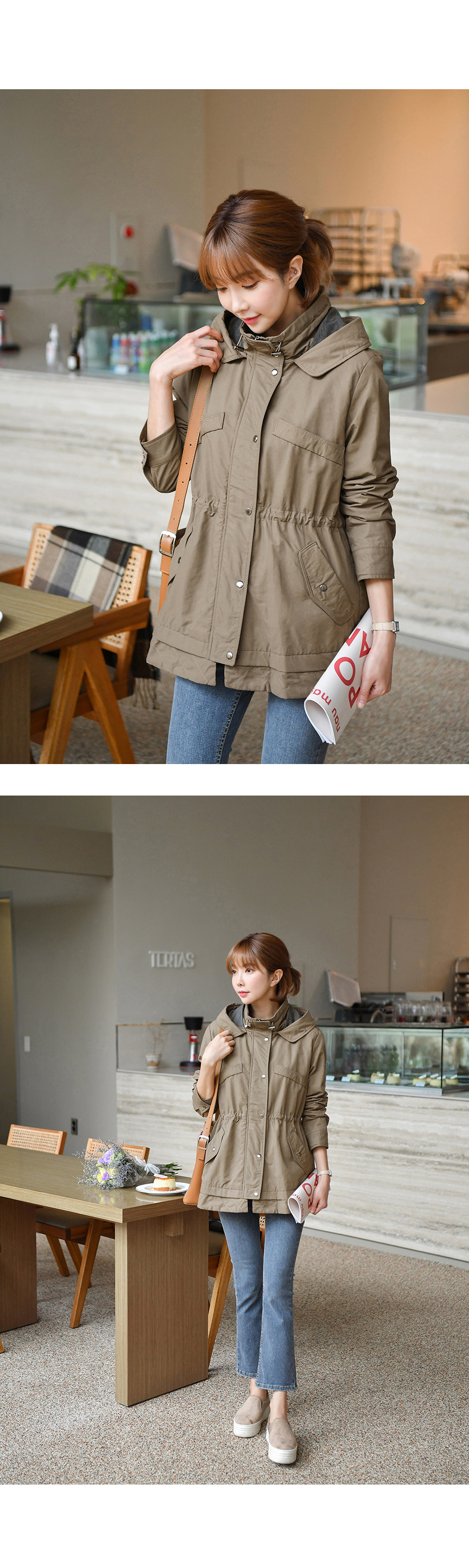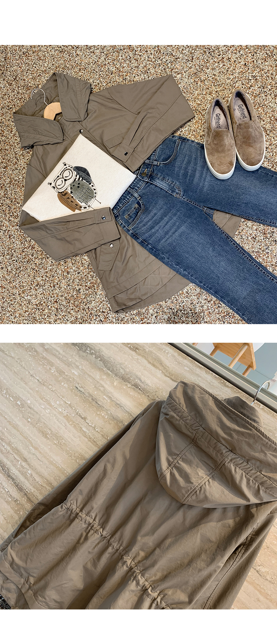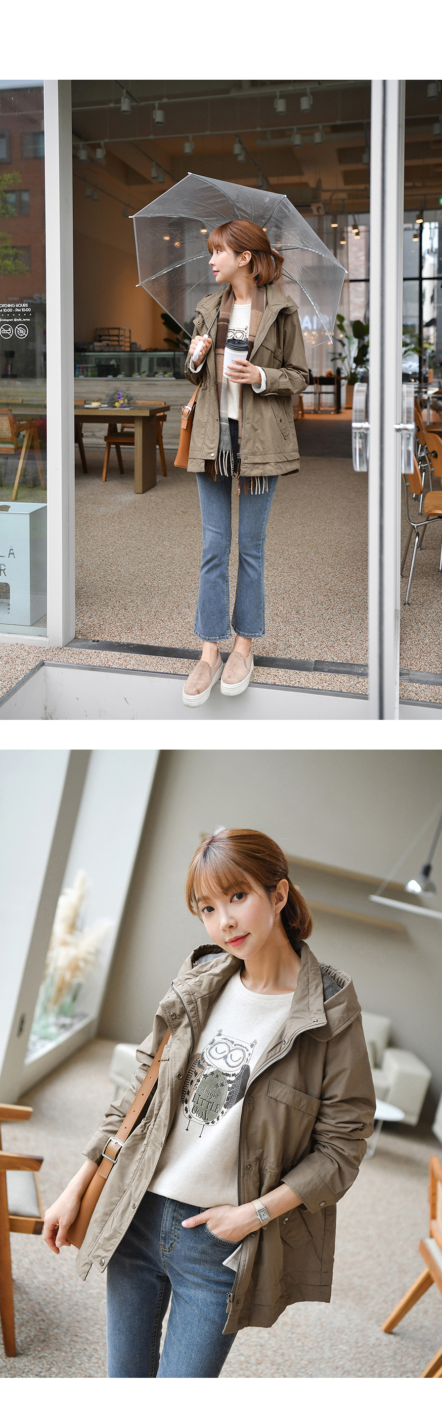 [뮤즈린] 온프 후드 스트링 야상점퍼