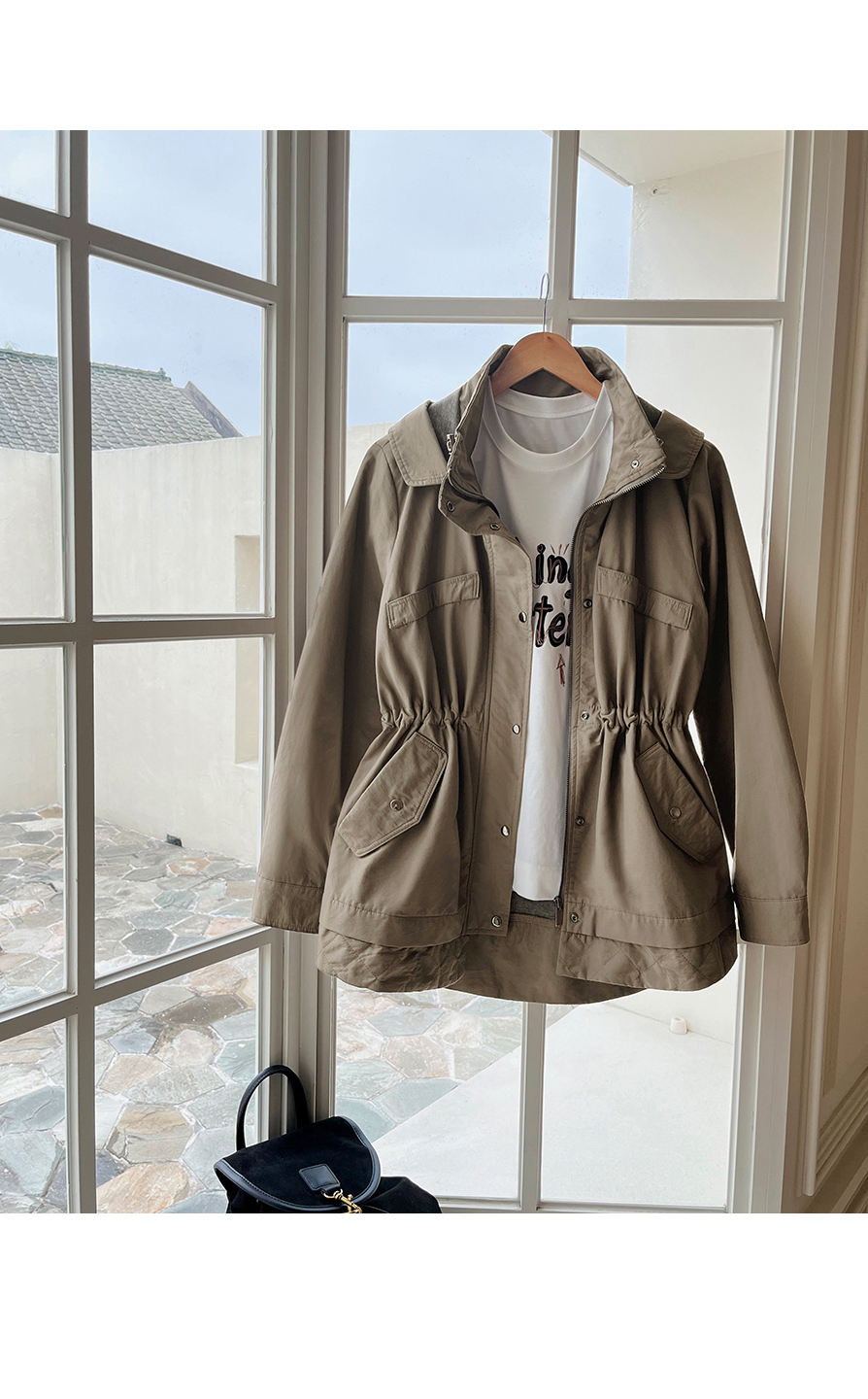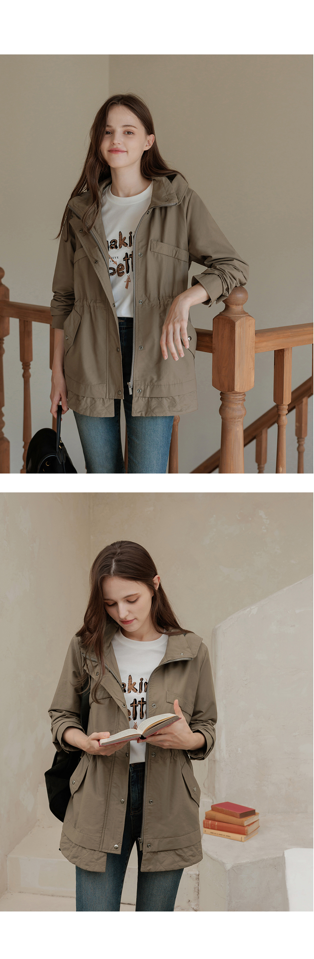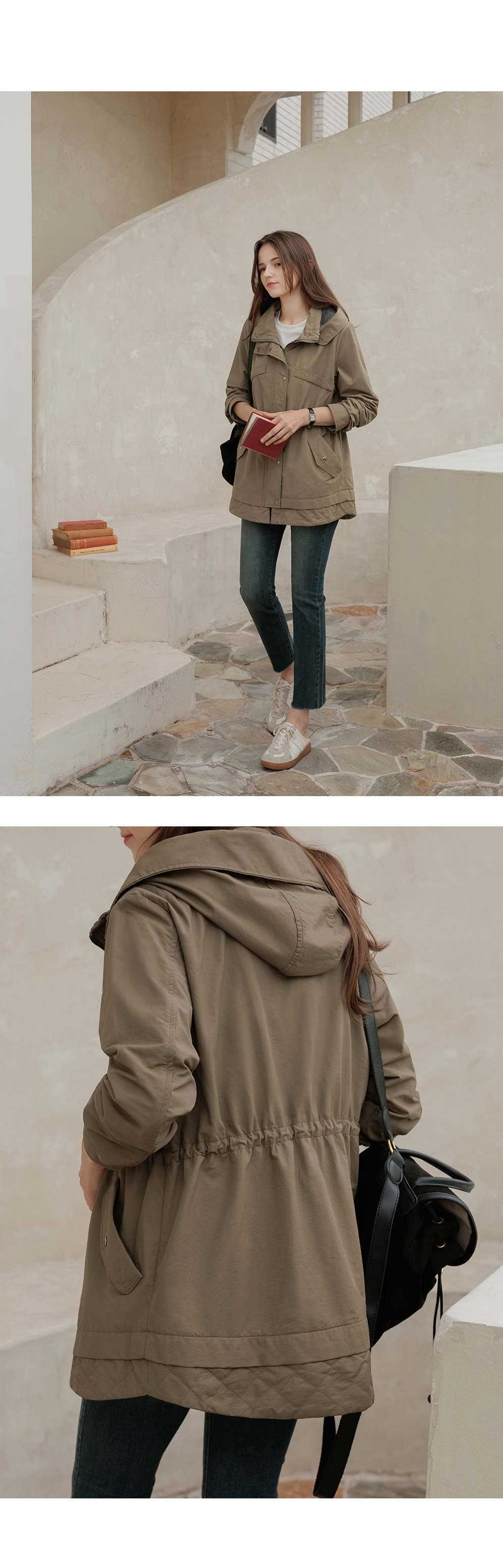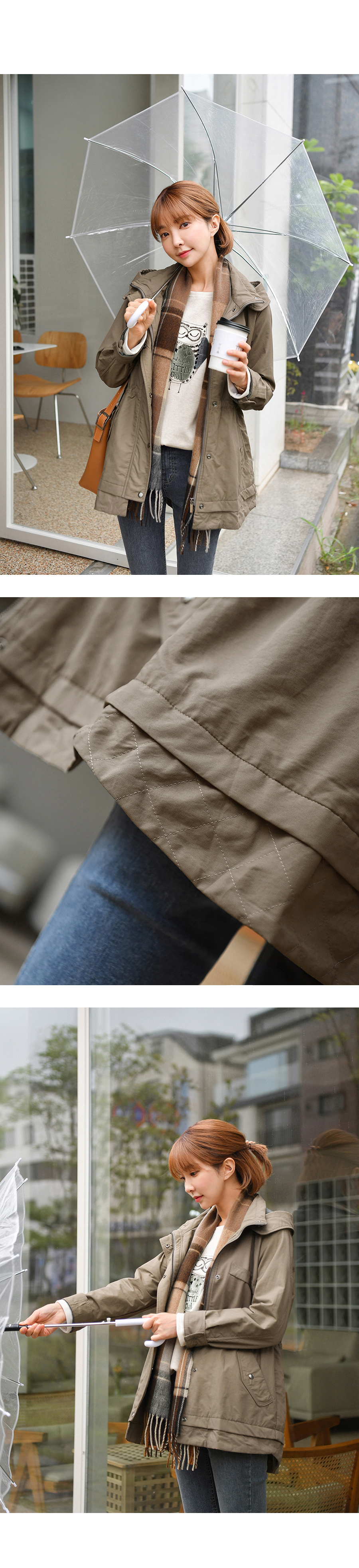 [뮤즈린] 온프 후드 스트링 야상점퍼