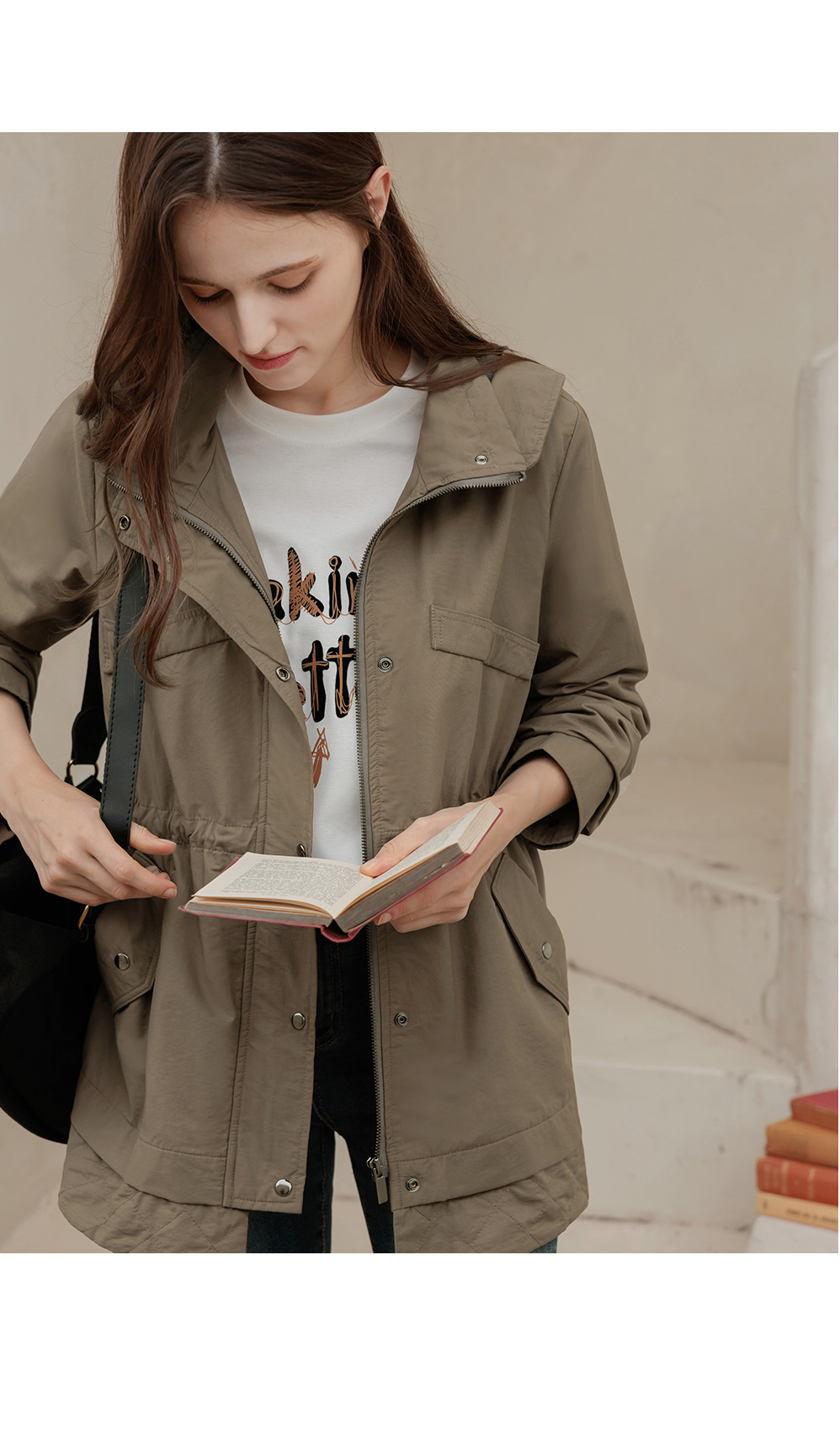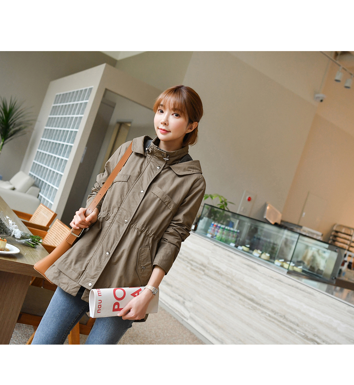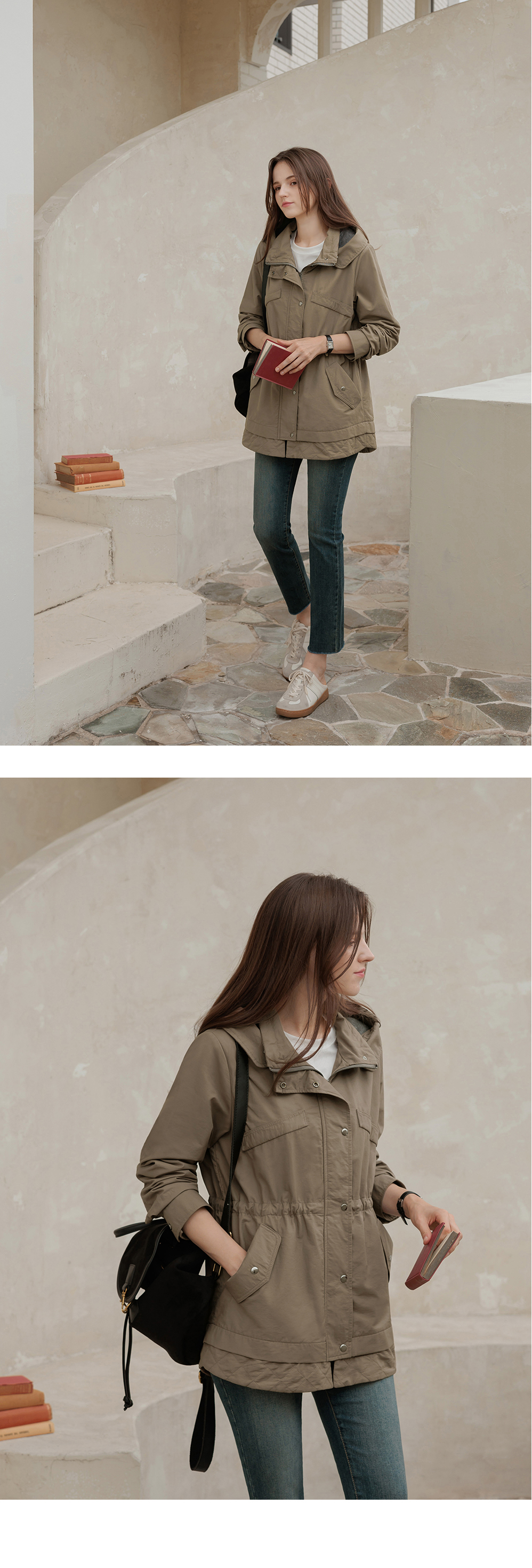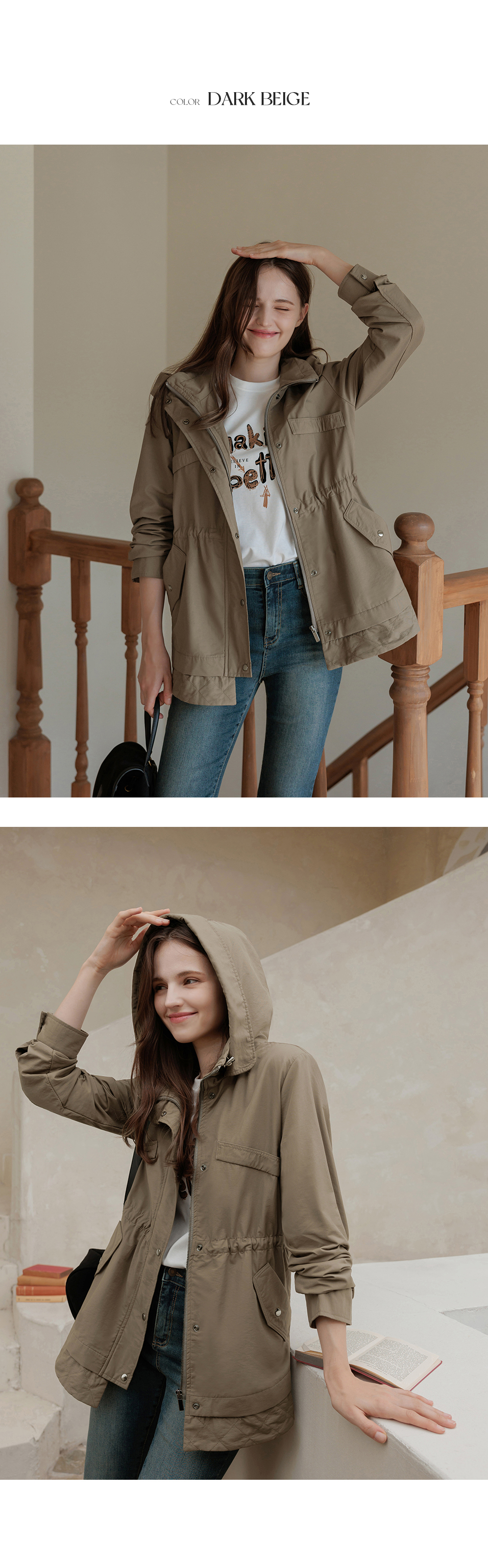 [뮤즈린] 온프 후드 스트링 야상점퍼