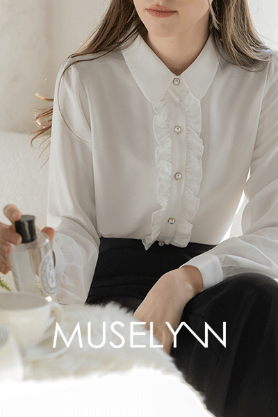 [뮤즈린] 주덴 프릴 진주 블라우스
