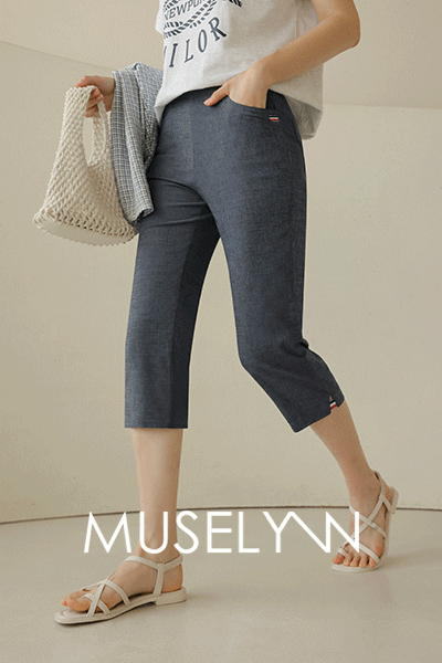 [뮤즈린] 로트 테이핑 7부 코튼 팬츠 [밴딩]