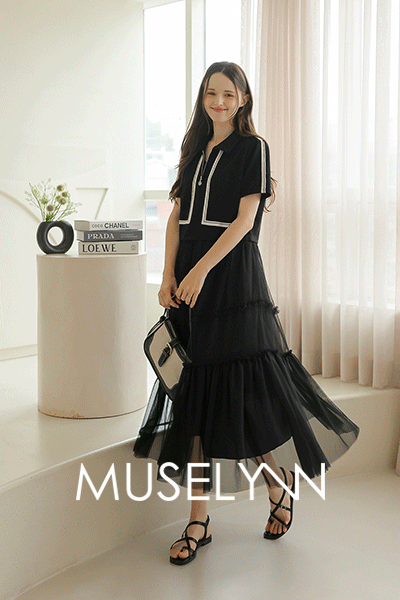 [뮤즈린] 일랑 배색 샤 니트 원피스