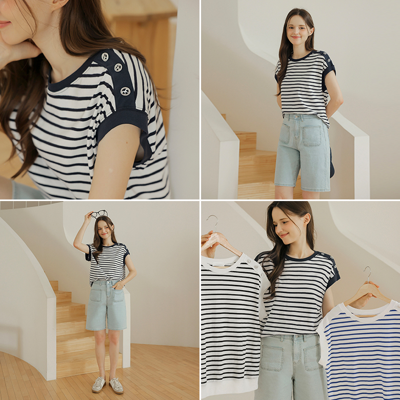 [뮤즈린] 소리 실버버튼 단가라 캡소매 맨투맨
