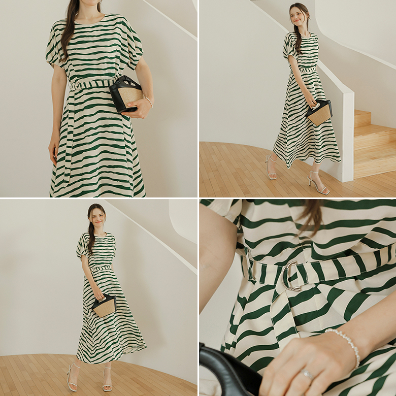 [뮤즈린] [벨트set] 루엔 지브라 핀턱 원피스