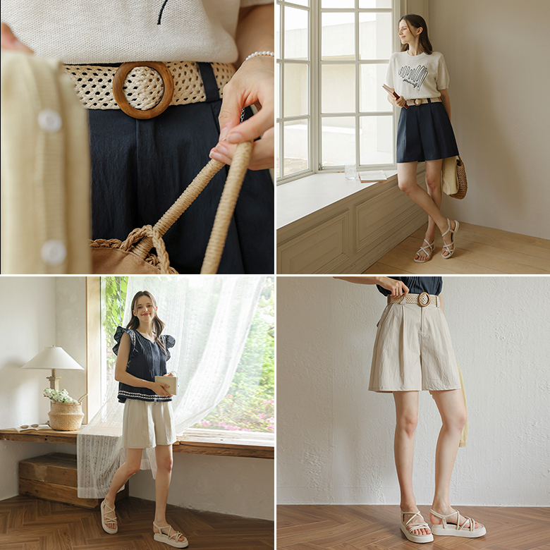 [뮤즈린] [벨트set] 티린 핀턱 4부 팬츠 [밴딩]
