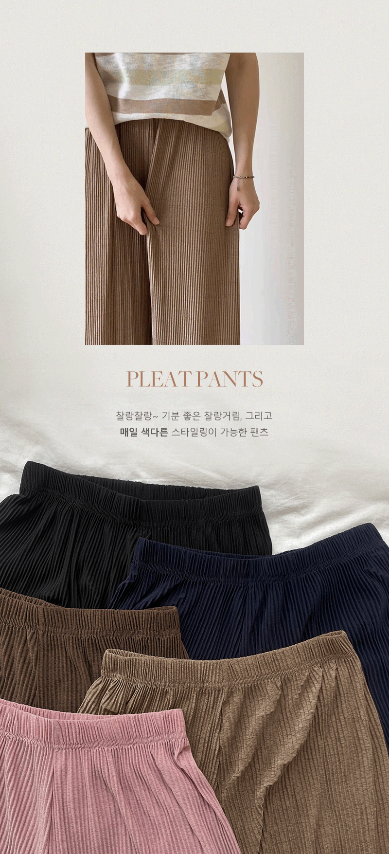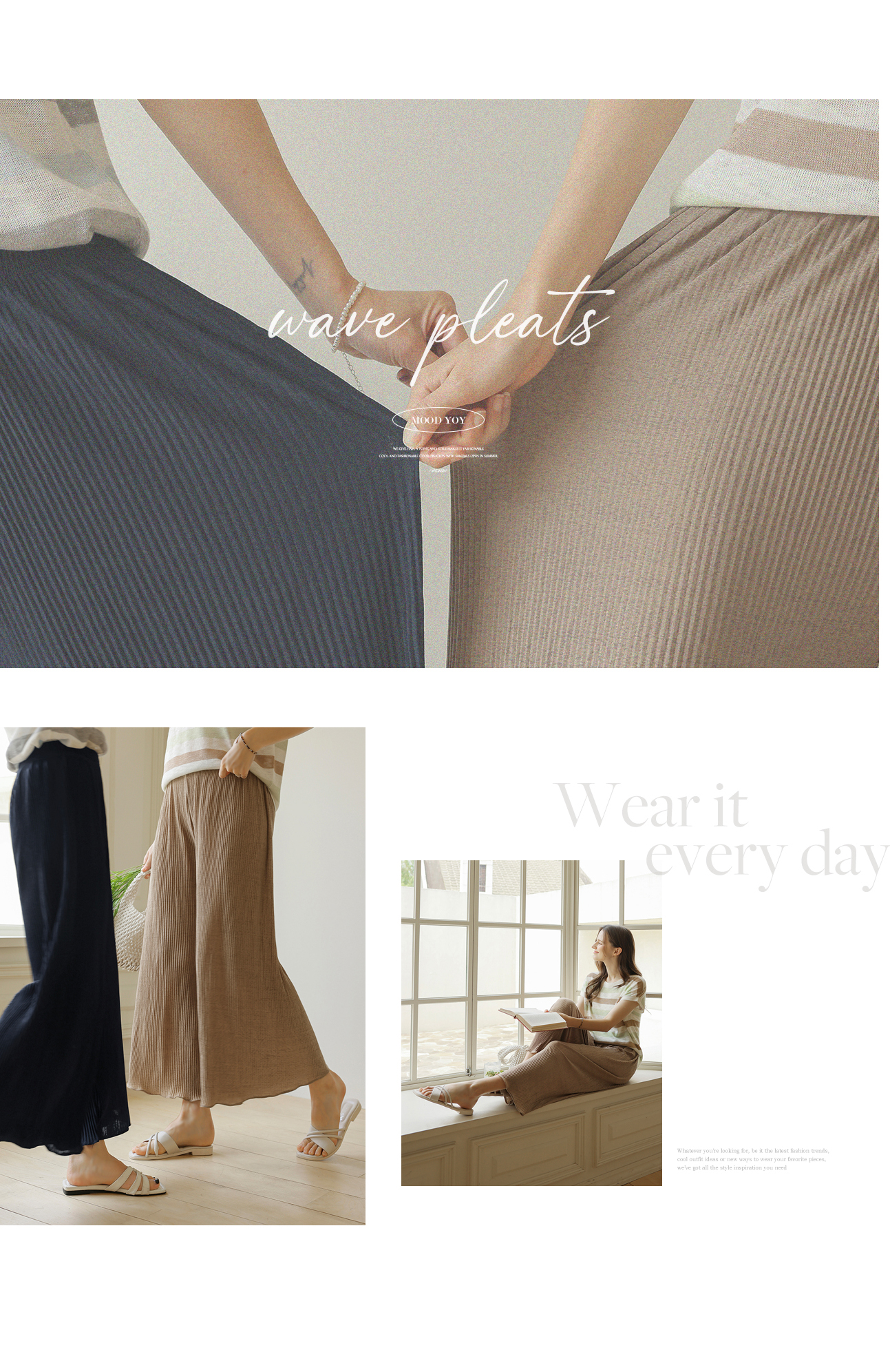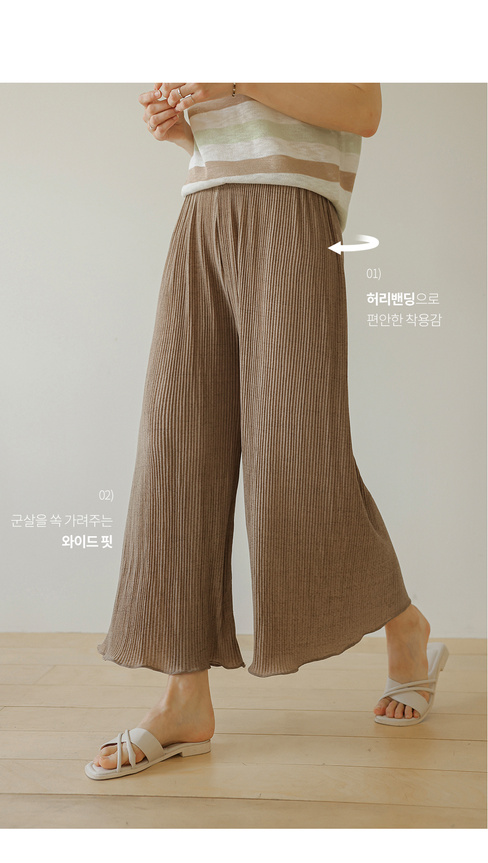 [뮤즈린] 미미 물결 플리츠 팬츠 [밴딩]