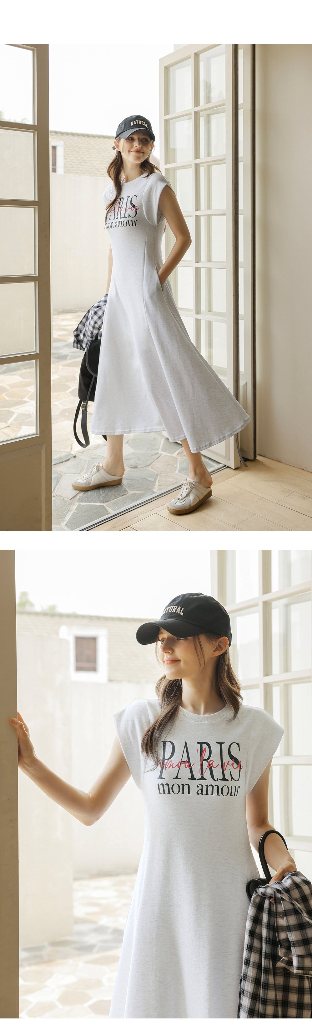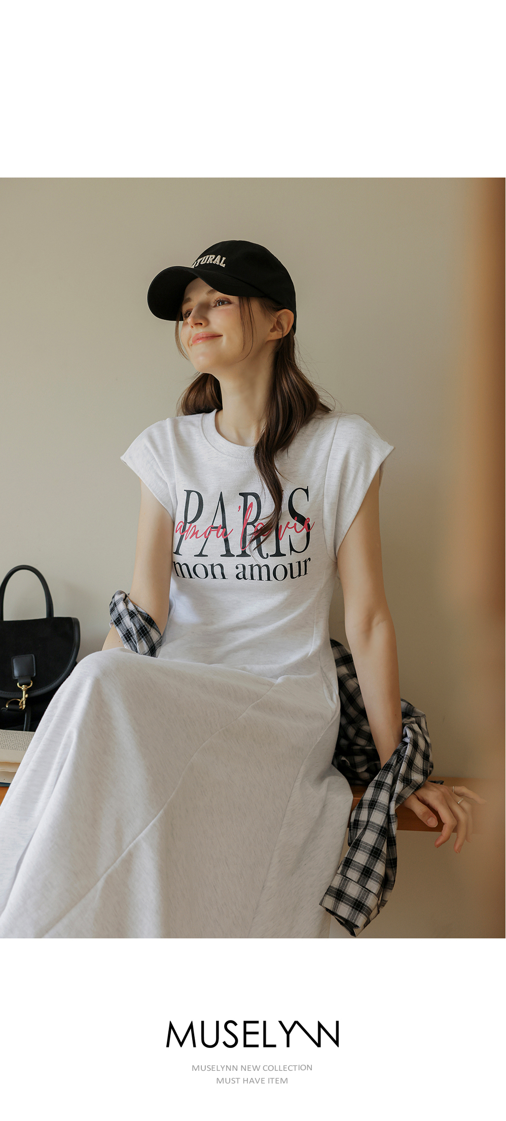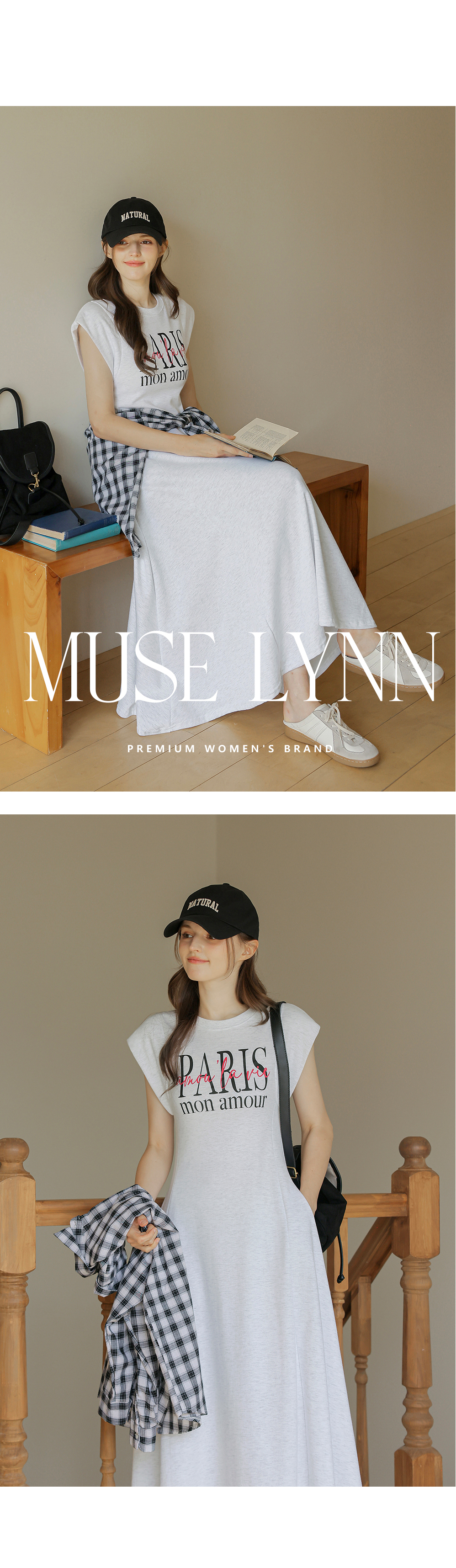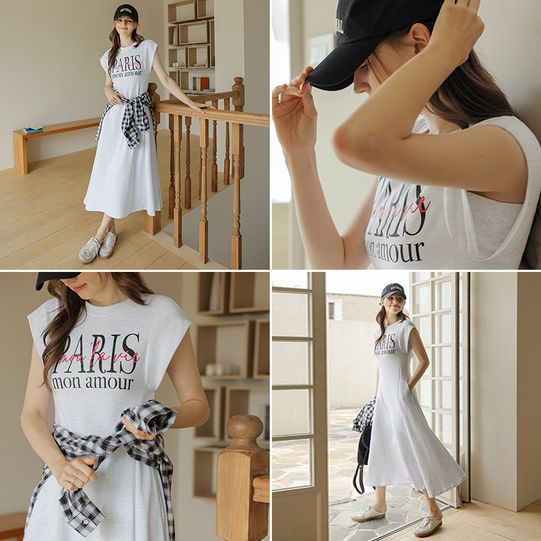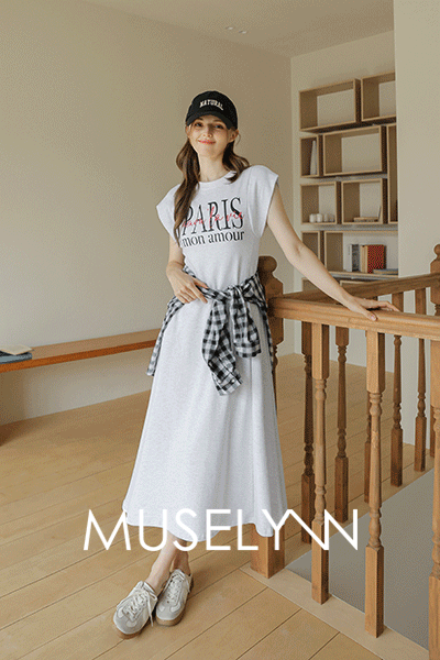 [뮤즈린] 파리스 캡소매 플레어 롱 원피스