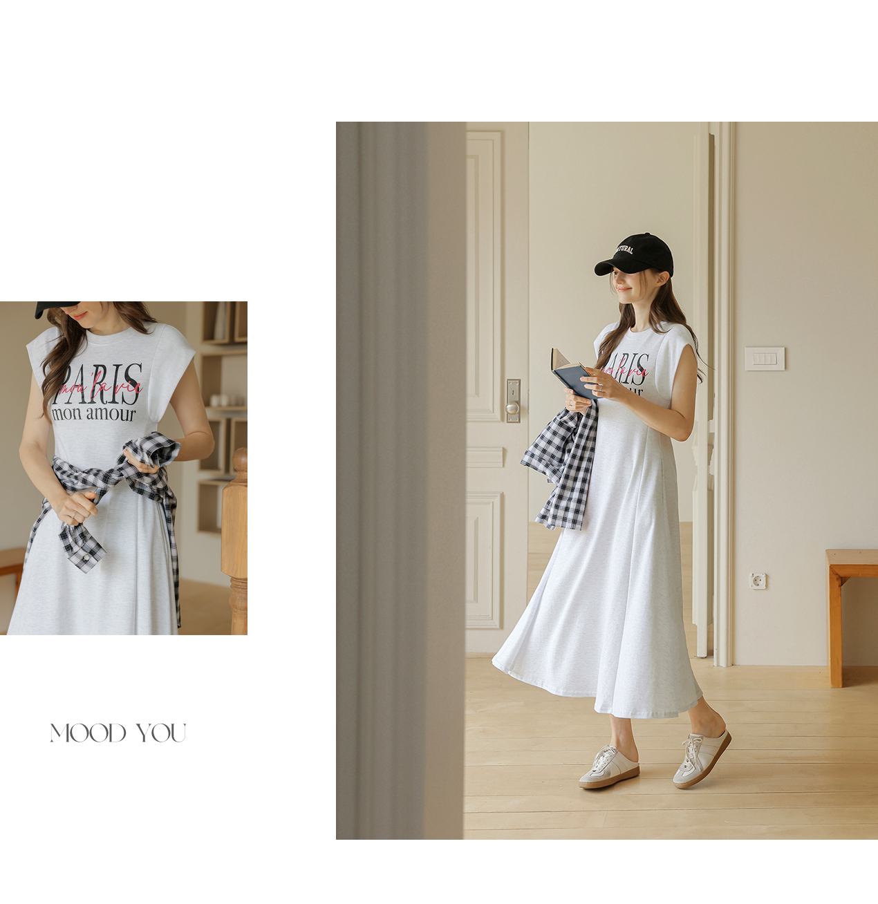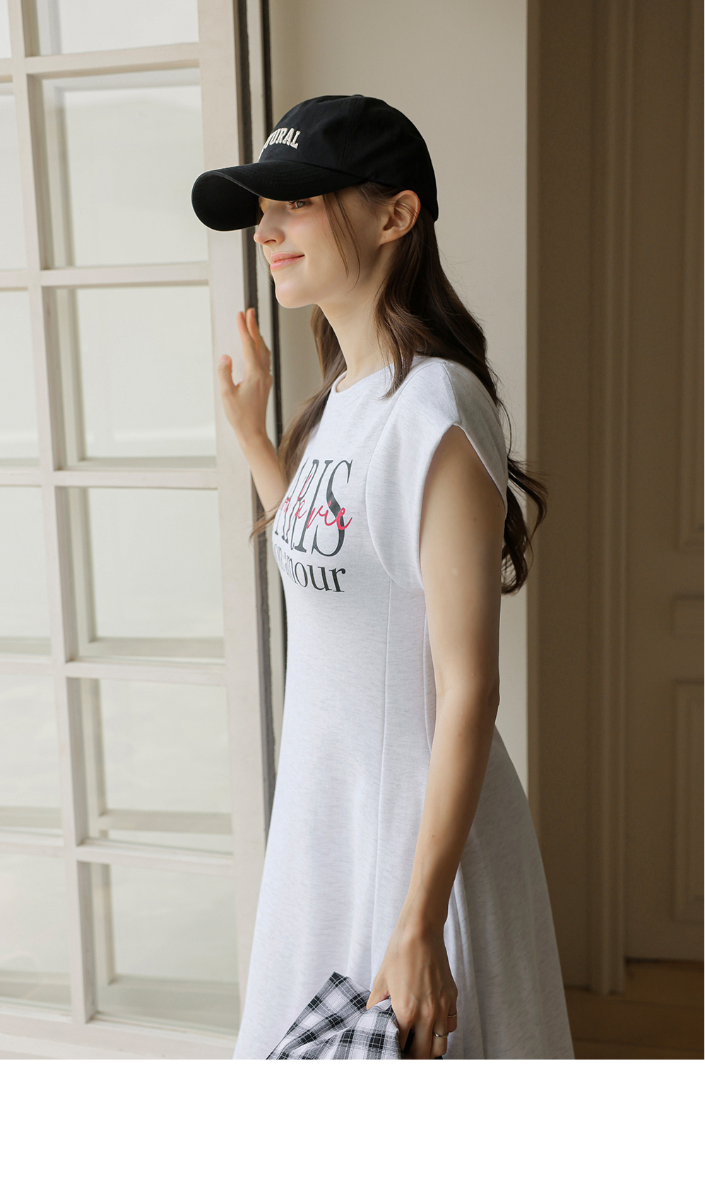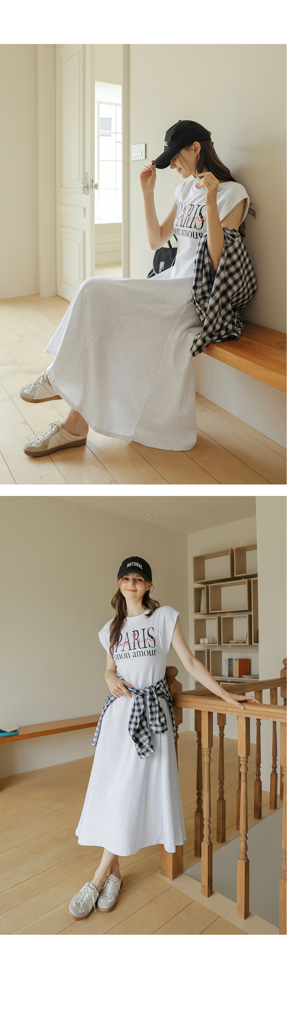[뮤즈린] 파리스 캡소매 플레어 롱 원피스