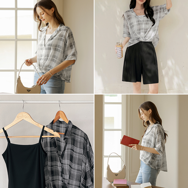[뮤즈린] [나시set] 빈츠 언발 체크 셔츠