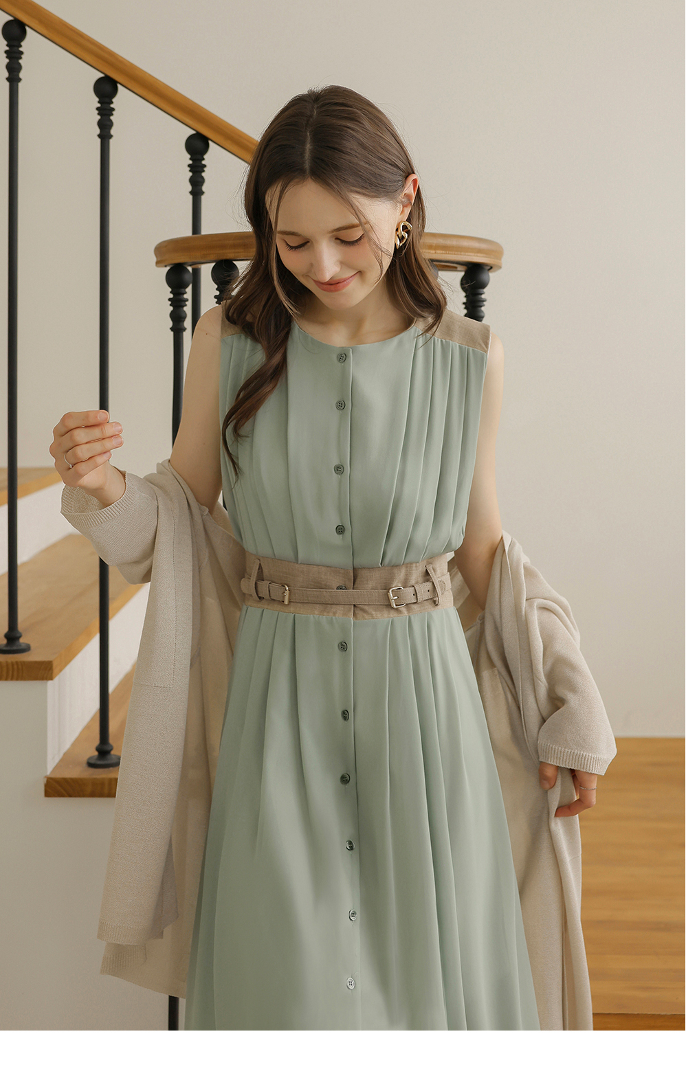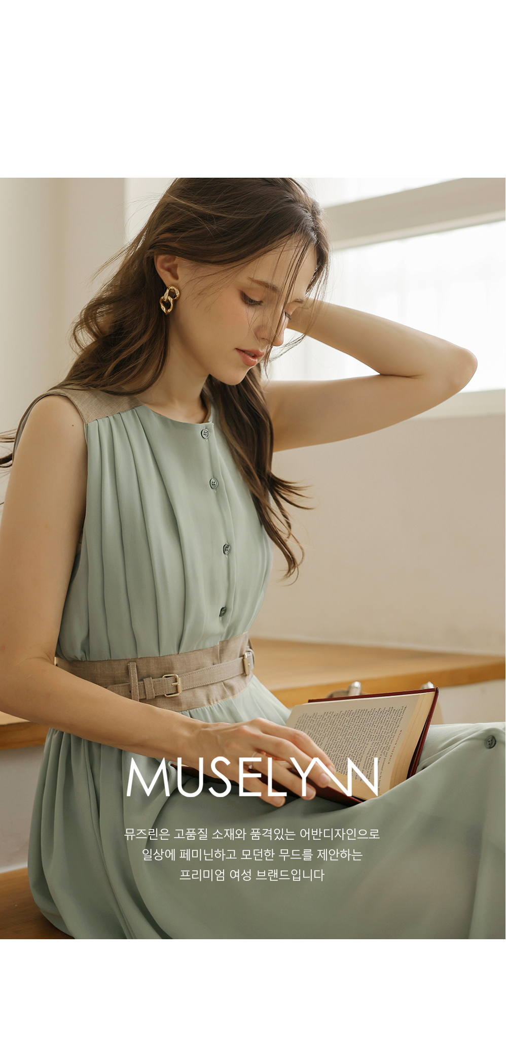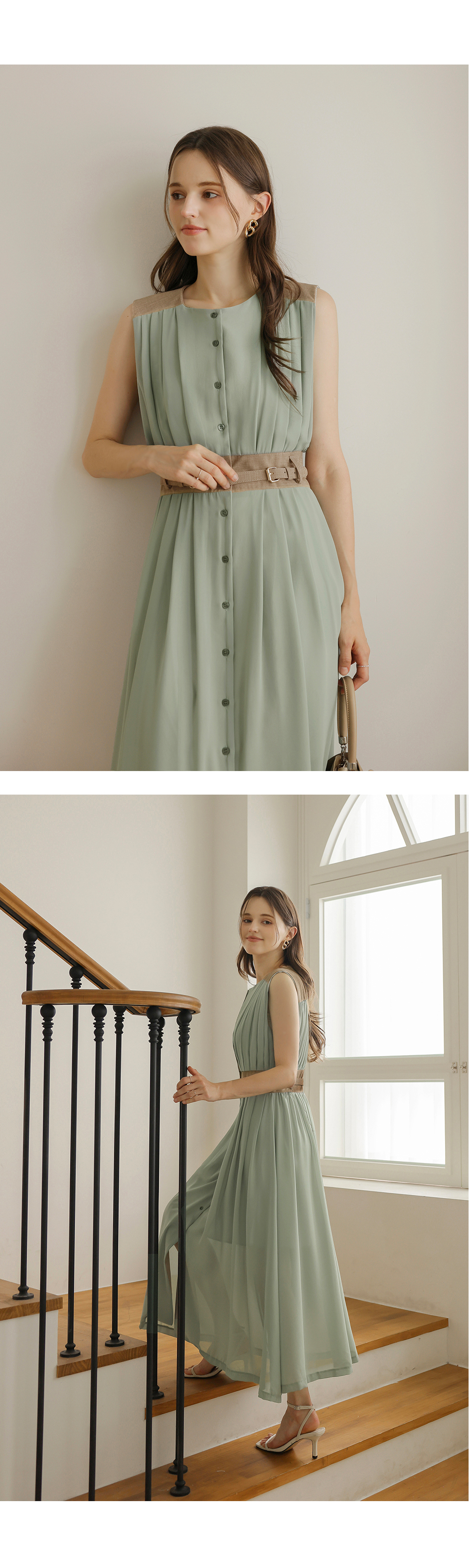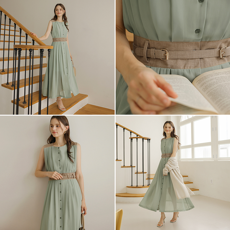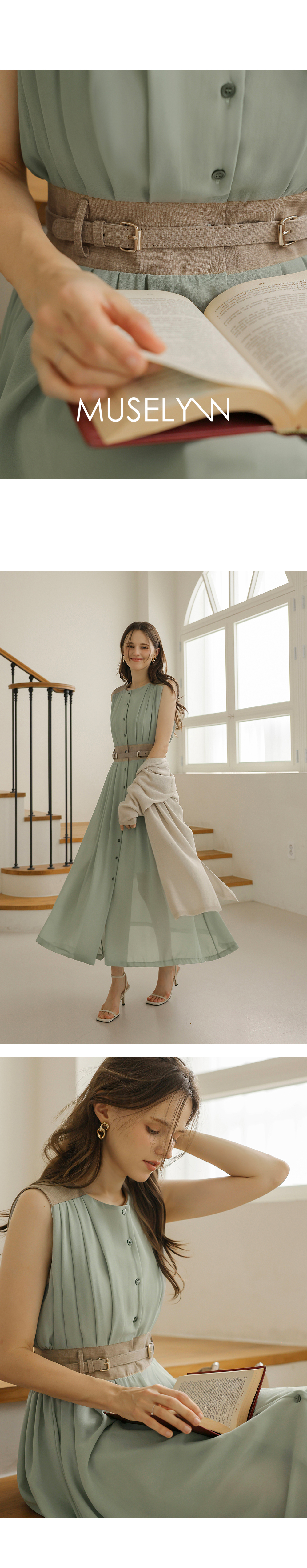 [뮤즈린] [벨트set] 코아 배색 핀턱 쉬폰 원피스