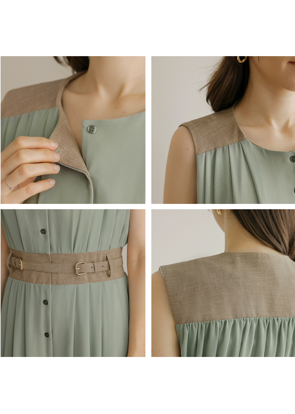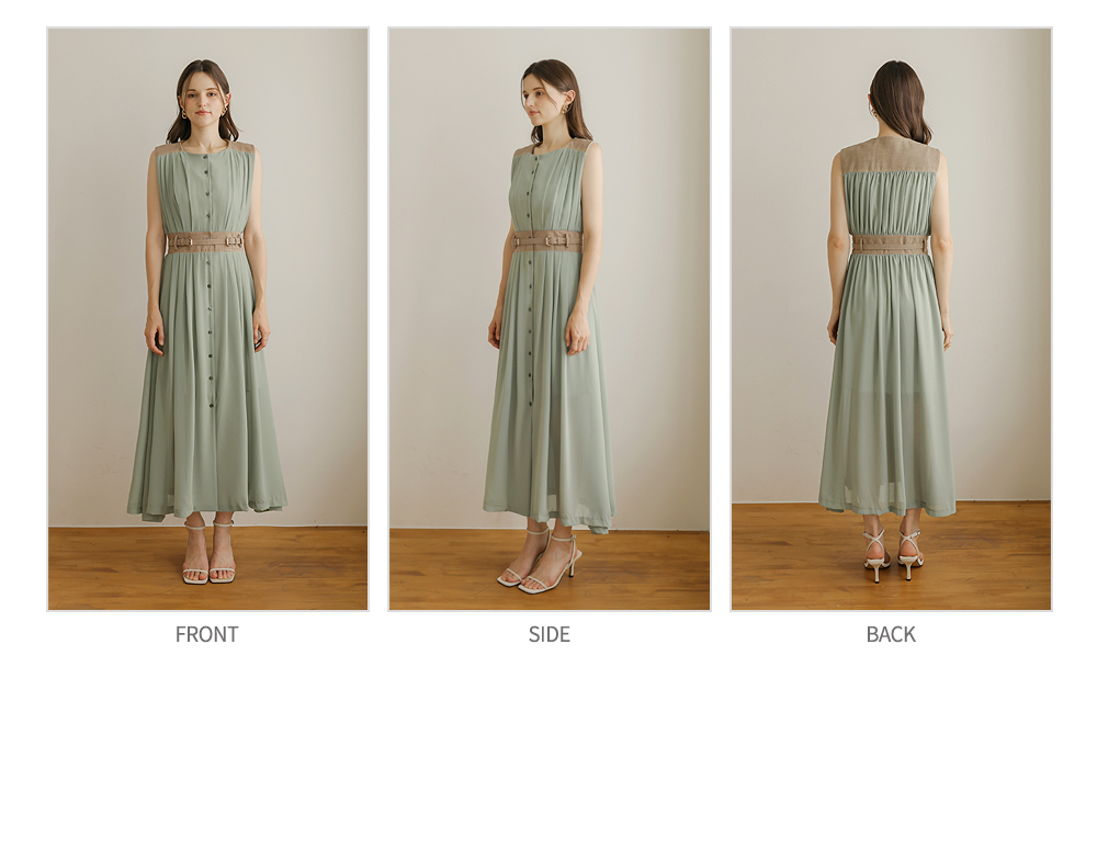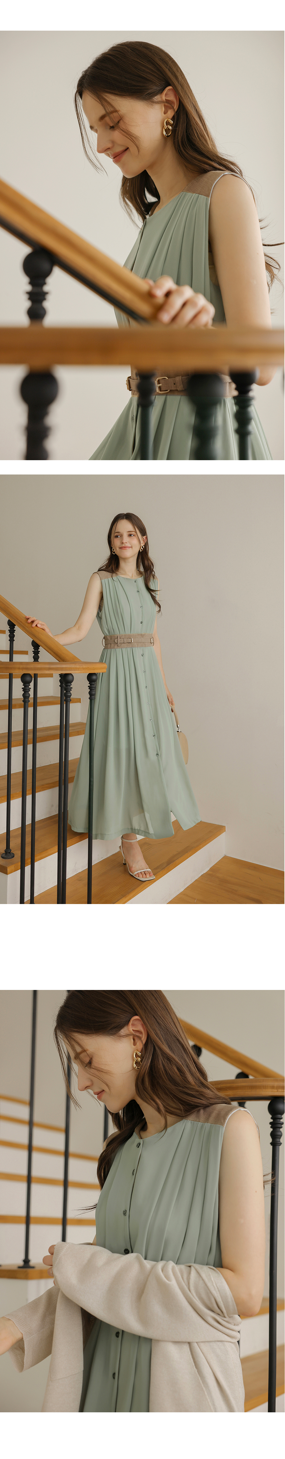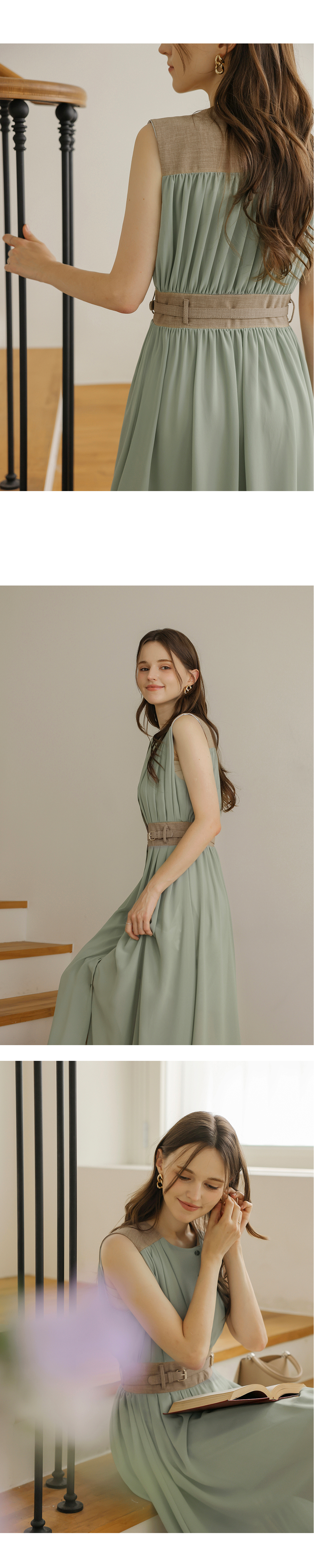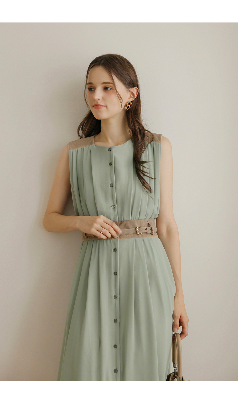 [뮤즈린] [벨트set] 코아 배색 핀턱 쉬폰 원피스