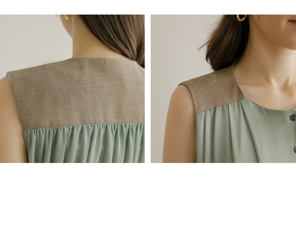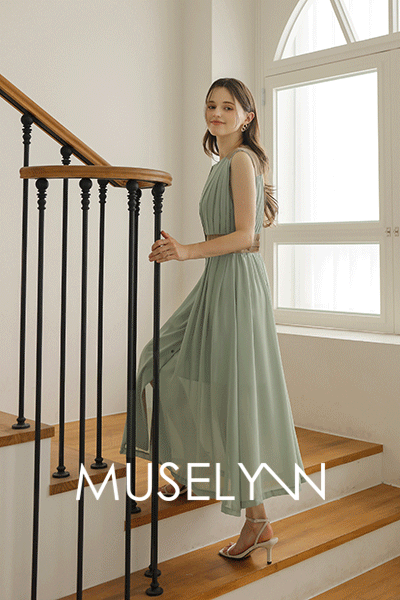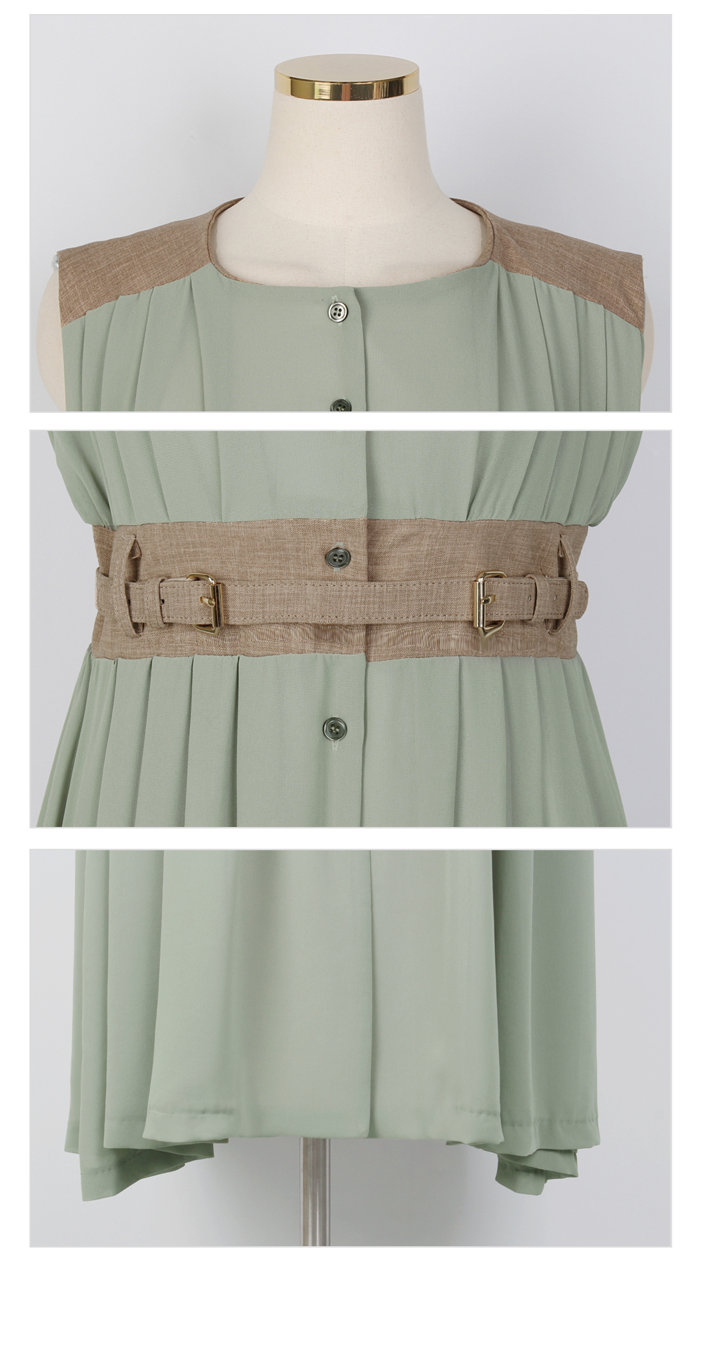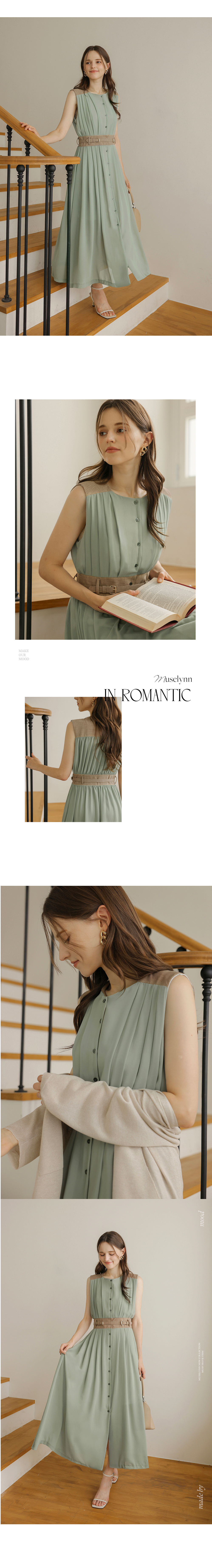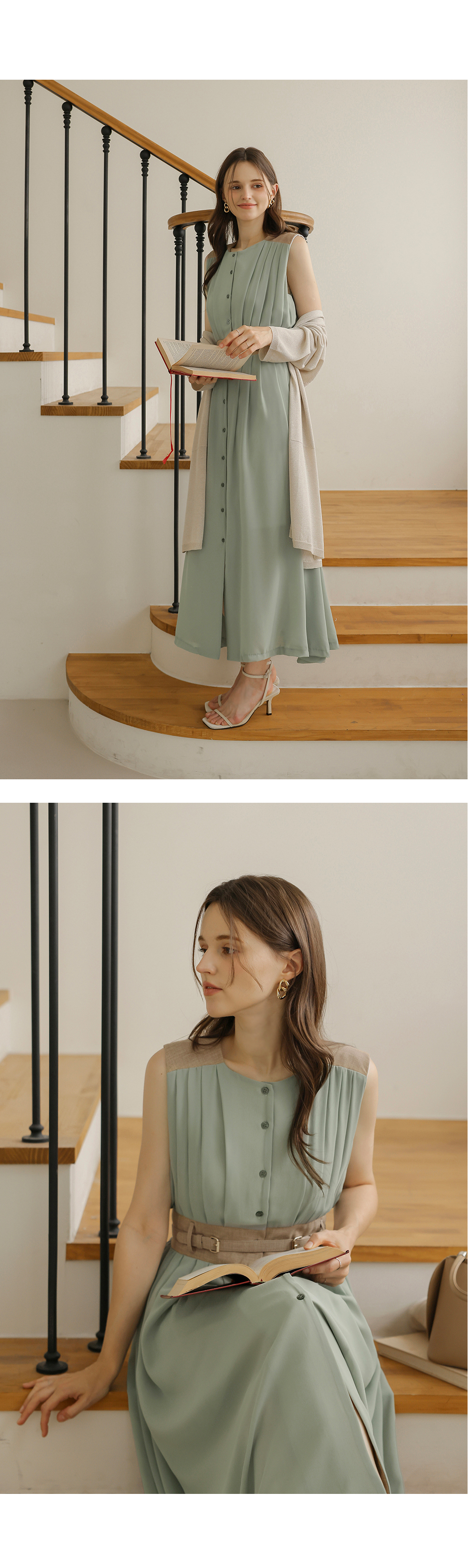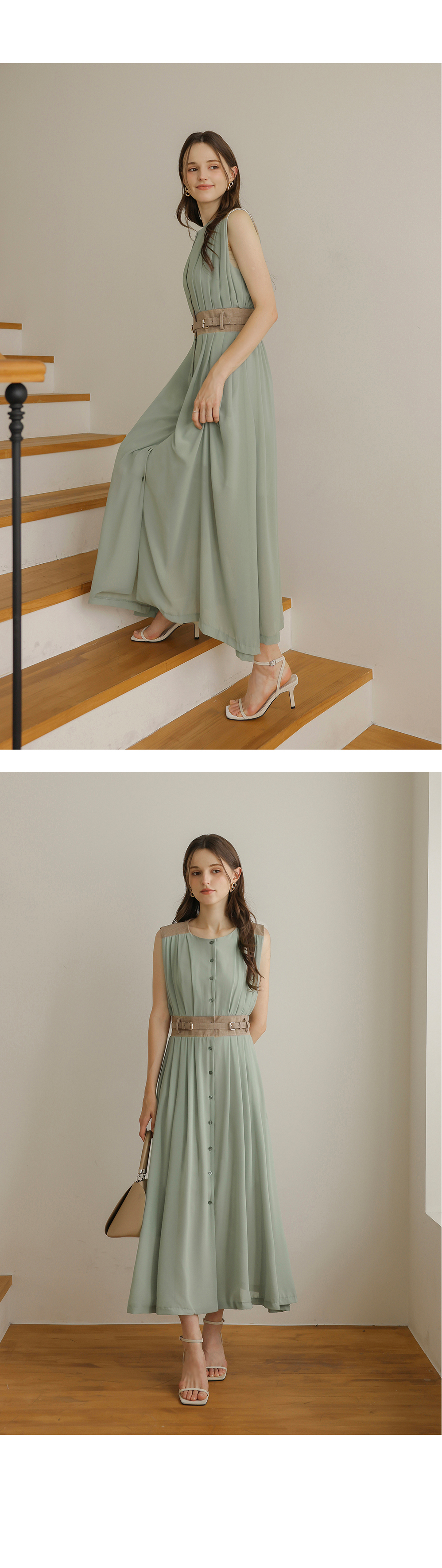 [뮤즈린] [벨트set] 코아 배색 핀턱 쉬폰 원피스
