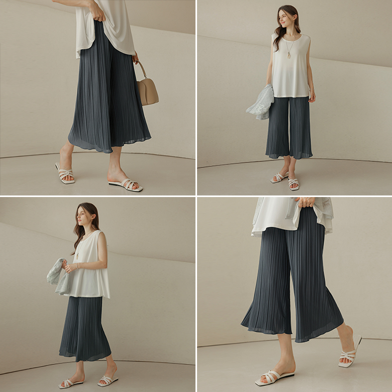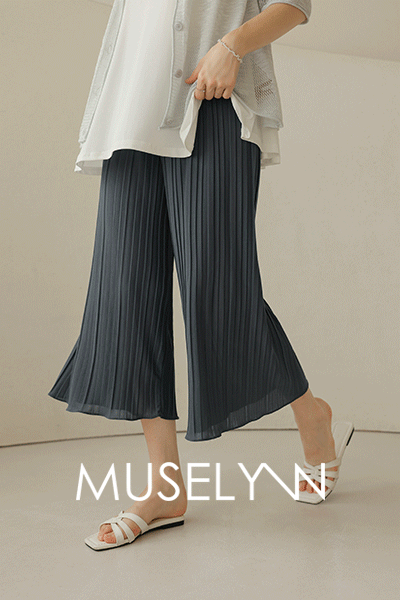 [뮤즈린] 콜리 물결 플리츠 8부 팬츠 [밴딩]