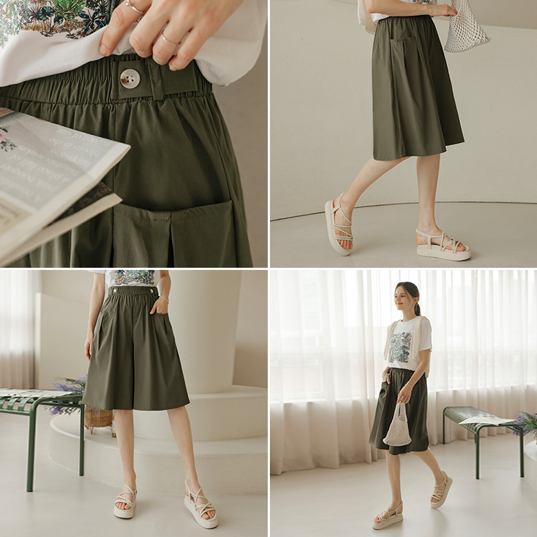 [뮤즈린] 플릭 핀턱 버튼 와이드 팬츠 [밴딩]