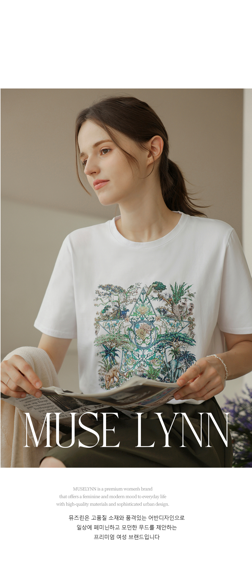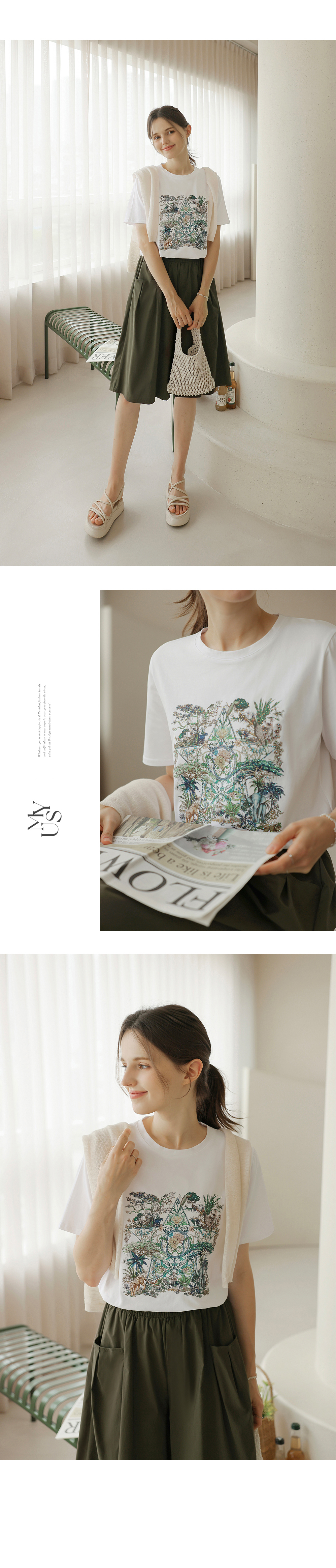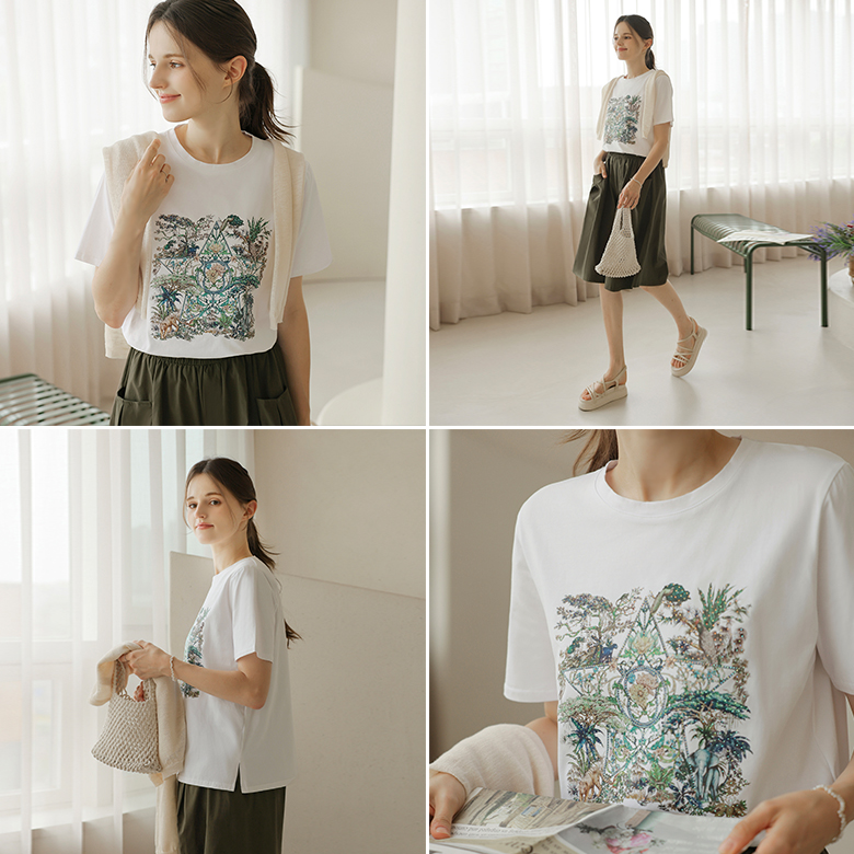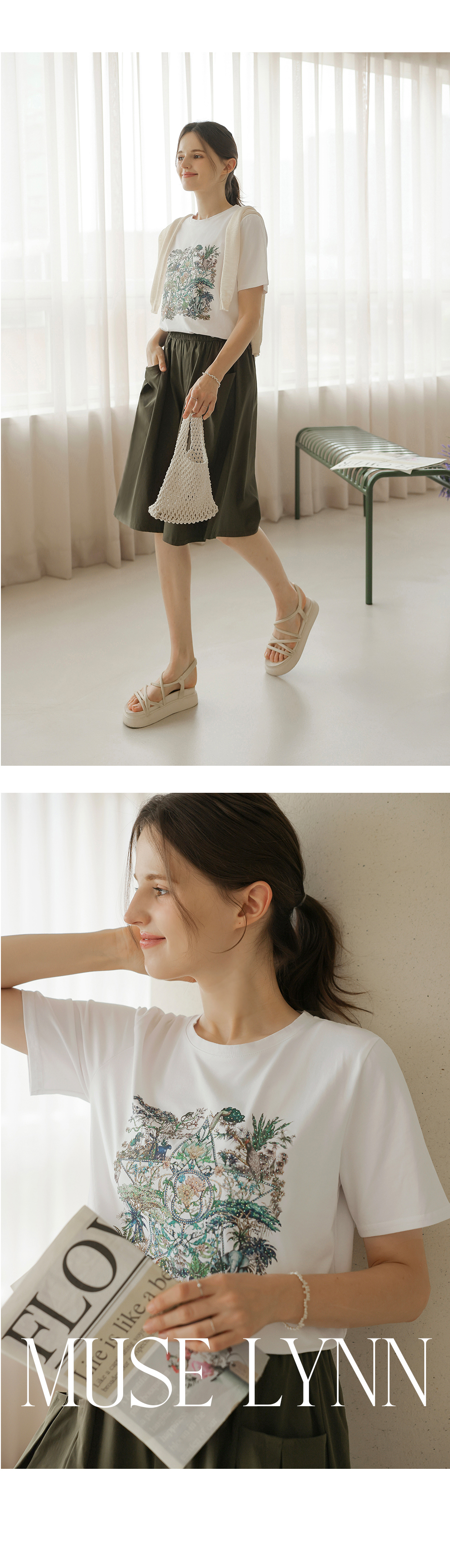 [뮤즈린] 플릭 쫀쫀 큐빅 사파리 티셔츠