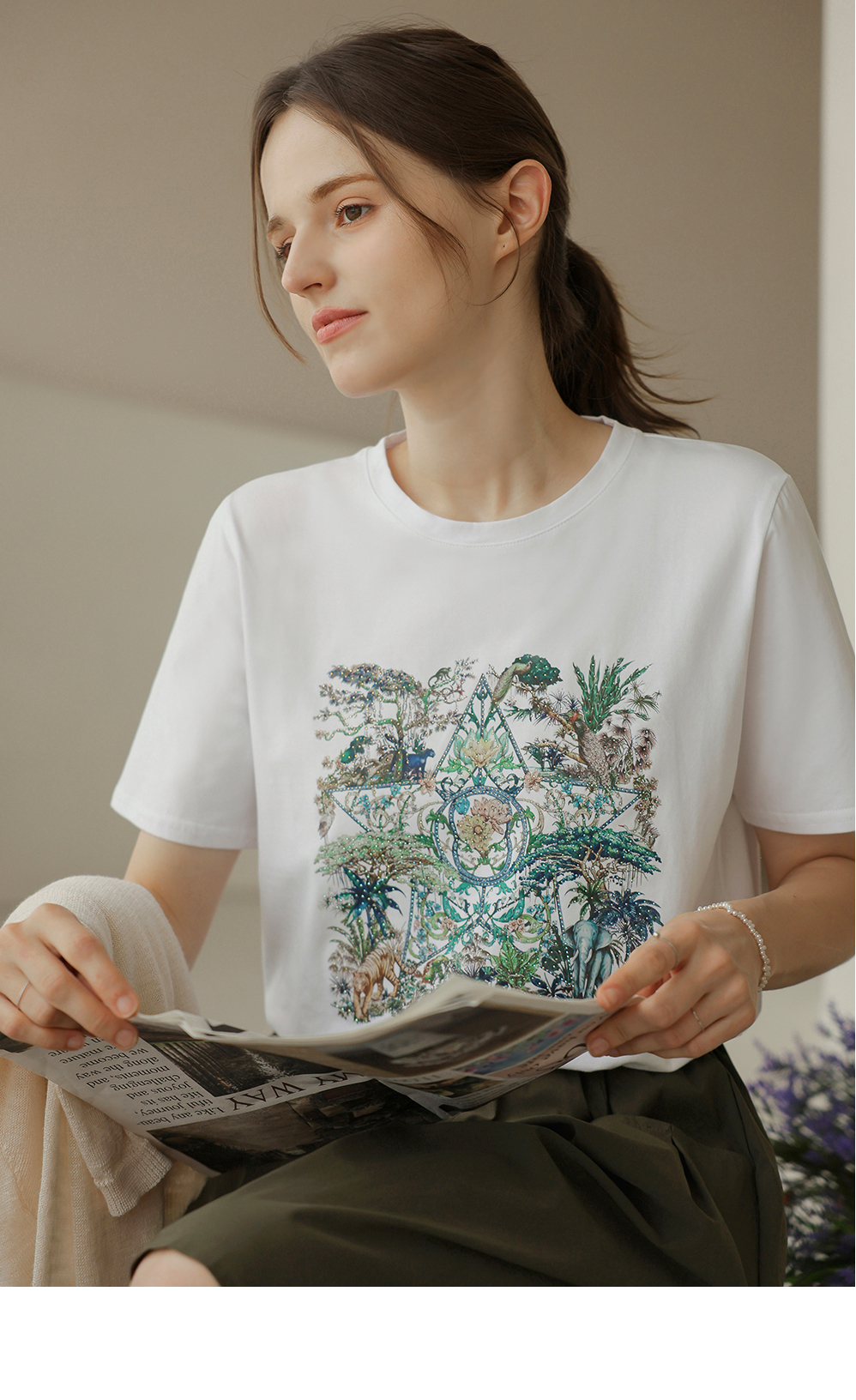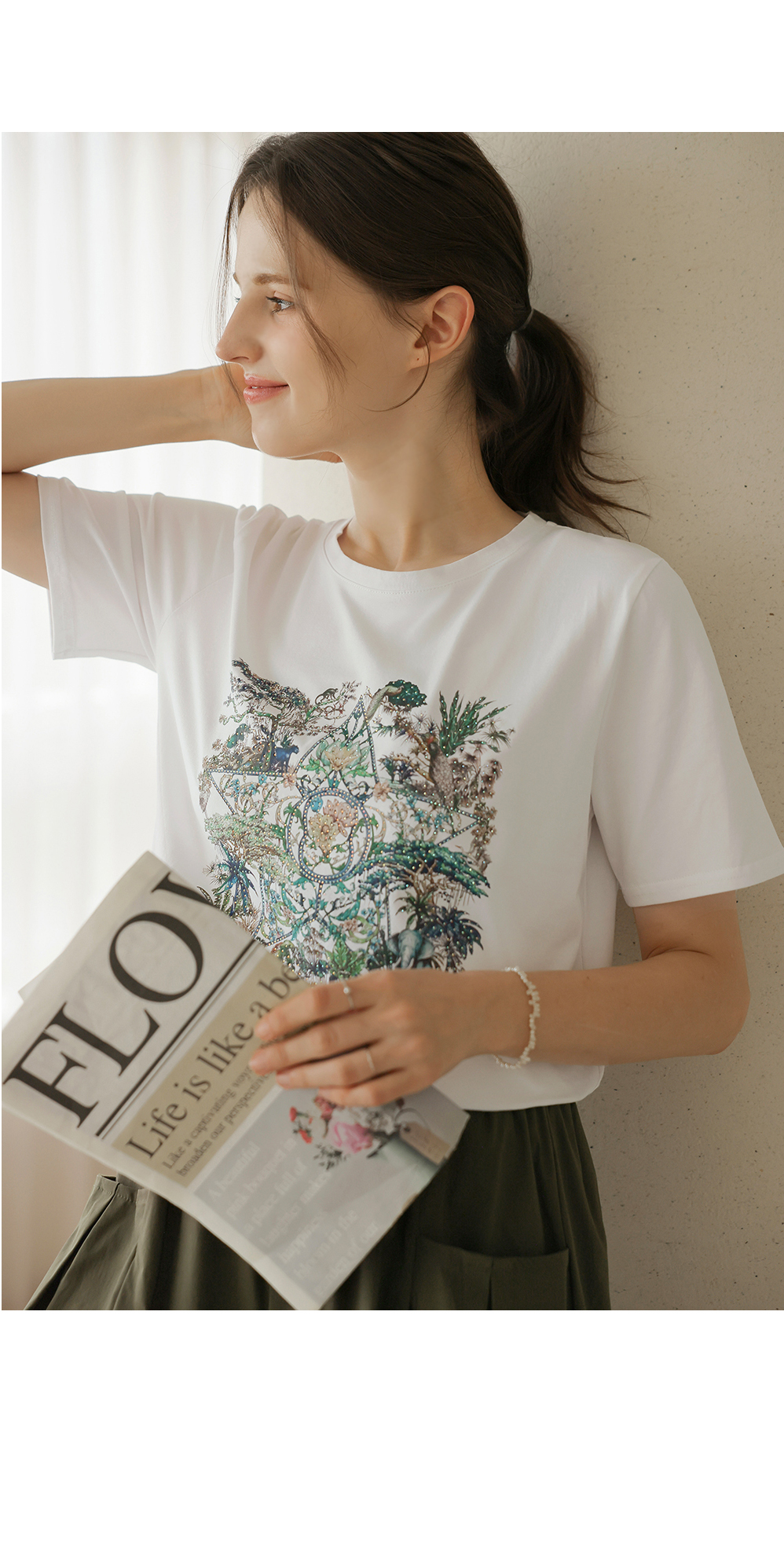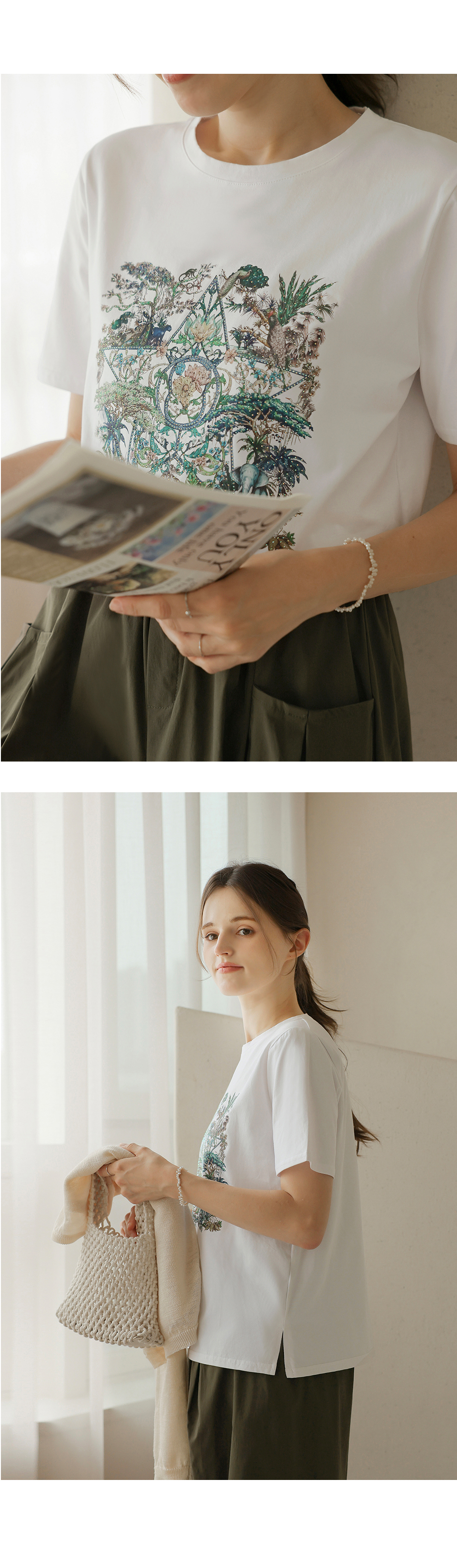 [뮤즈린] 플릭 쫀쫀 큐빅 사파리 티셔츠