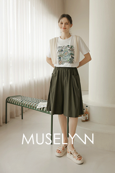 [뮤즈린] 플릭 핀턱 버튼 와이드 팬츠 [밴딩]