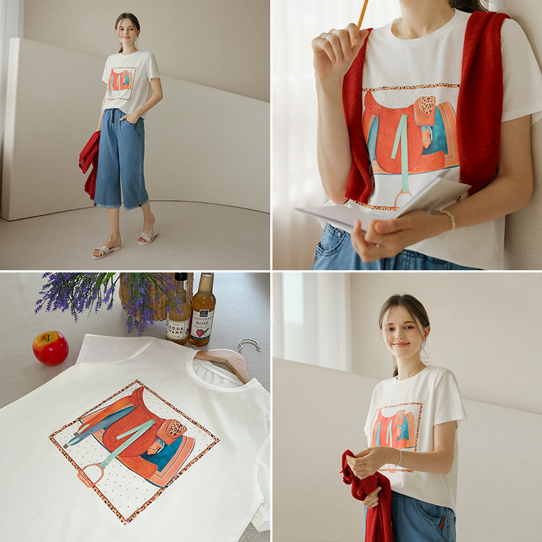 [뮤즈린] 도도 쫀쫀 큐빅 프린팅 티셔츠