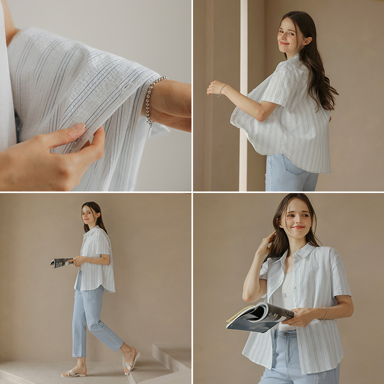 [뮤즈린] 쿠쿠린 시어서커 스트라이프 반팔 셔츠