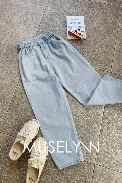 [뮤즈린] 쿠쿠 셔링 배기핏 데님팬츠 [밴딩]