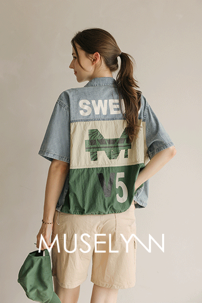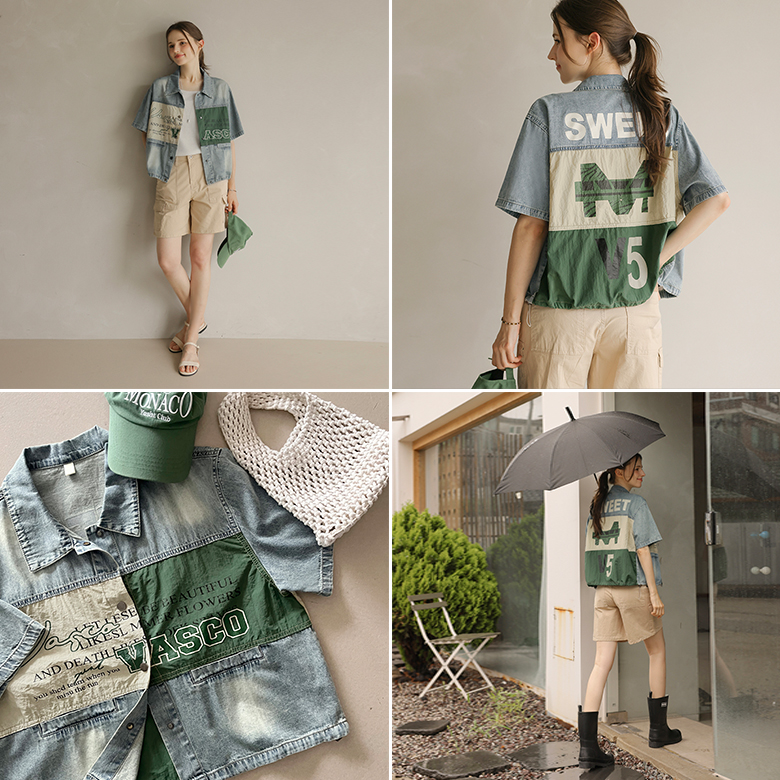 [뮤즈린] 온디 레터링 배색 반팔 데님 자켓