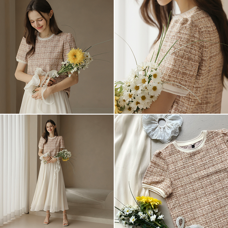 [뮤즈린] 사라 배색 트위드 블라우스 티